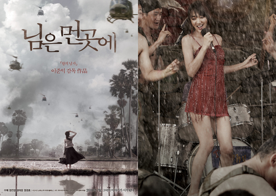 수애는 가수로, 정진영은 생애 첫 악역으로 변신했다. 이준익 감독의 전쟁 블록버스터 신작 '님은 먼곳에'다. 영화는 1971년 베트남 전쟁에 참전한 남편을 찾기 위해 전쟁터 한복판으로 뛰어든 한 여인의 이야기를 그렸다. 여주인공 수애(28)가 맡은 역할은 위문 공연단 가수 ‘써니’로 파격 변신하는 시골 주부 순이. 순이는 남편을 만나기 위한 일념으로 평범한 시골 생활을 접고 파월장병 위문공연단 가수 ‘써니’가 되어 전쟁터 한복판으로 향하는 강인하고 성숙한 캐릭터다. 여기서 수애는 지금까지 그녀의 출연작에서 볼 수 없었던 강렬하고 새로운 매력을 한껏 발산한다. ‘간다고 하지 마오’, ‘월남에서 돌아온 김상사’, ‘울릉도 트위스트’ 등 당시의 히트곡들을 온 몸으로 소화하며, 자신의 숨겨진 끼를 마음껏 발산했다. 제작진에 따르면 수애는 크랭크인 두 달 전부터 음악과 춤 교습을 받았으며 특히 당시의 안무를 완벽하게 재현해내기 위해 실제 공연 자료를 찾아 연습을 거듭하는 등 새로운 도전에 대한 뜨거운 열정을 보였다. 이준익 감독은 “‘님은 먼곳에’의 시나리오를 준비하는 내내 수애가 ‘순이’에서 ‘써니’까지 자신 안에 있는 새로운 수애를 찾아낼 수 있을 것이라 확신했다. 스크린을 통해 수애의 눈을 보면 ‘순이’의 진심을 볼 수 있을 것이다”며 여주인공인 수애에 대한 강한 신뢰와 기대감을 표시했다. '황산벌' '왕의 남자' '즐거운 인생' 등에 주연으로 출연하며 이 감독의 페르소나로 자리잡은 정진영. 새 영화에서 비열하고 야비한 위문공연단 단장 정만 역을 맡아 생애 첫 악연에 도전했다. 정만은 멤버들 돈을 밥 먹듯 빼돌리고 상황에 따라 태도를 달리하면 능청스럽게 대처하는 인물. 한 몫 단단히 잡기 위해 베트남으로 가려던 그는 남편을 찾으려는 순이를 밴드 보컬로 끌어들여 돈벌이 할 궁리에 정신을 쏟는 비열남이다. '즐거운 인생'에서 40대 밴드의 기타리스트로 활약했던 정진영은 '님은 먼곳에'에서 색소폰 연주까지 선보여 눈길을 끌고 있다. 나팔 바지와 화려한 색상의 셔츠로 돌아다니는 그의 쌍팔년도식 패션도 눈요깃 거리. 정진영과 수애의 연기 변신이 돋보일 영화 '님은 먼곳에'는 7월말 개봉예정이다. mcgwire@osen.co.kr