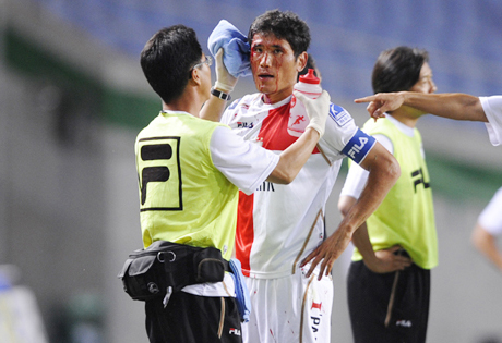 살림꾼 배효성(26)의 부상으로 부산 아이파크에 비상이 걸렸다. 부산은 27일 중앙수비수 배효성이 지난 25일 인천전에서 라돈치치의 팔꿈치에 안면을 가격당해 광대뼈가 함몰되는 심각한 부상을 입었다고 밝혔다. 인천전 후반 초반 라돈치치와 경합을 벌이던 도중 부상을 입은 배효성은 피를 흘렸던 이마 부위에만 응급처치를 하고 다시 경기에 임하는 투혼을 발휘한 바 있다. 당시 큰 부상은 아니라는 생각에 부산 관계자들은 안도의 한숨을 내쉬었지만, 경기가 끝난 후 정밀검사 결과 약 6개월 간 절대 안정을 취하며 입원 치료를 해야 하는 중상인 것으로 드러났다. 배효성은 "당시에는 아플 겨를도 없었다. 빨리 들어가서 내 자리를 지켜야 한다는 생각뿐이었다"며 "갑작스런 부상으로 걱정시켜드려 팬들과 동료들에게 미안한 마음이다"고 말했다. 한편 배효성이 올 시즌 복귀가 불가능해 보임에 따라 부산은 큰 타격을 입을 것으로 보인다. 이미 부산은 팀의 주축 미드필더 이강진의 부상으로 어려움을 겪어왔다. stylelomo@osen.co.kr 부산 아이파크 제공.