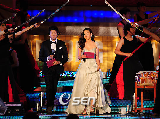 제45회 대종상 영화제 시상식이 27일 저녁 서울시 강남구 삼성동 코엑스 컨벤션홀에서 열렸다. 56개 작품이 출품돼 최우수 작품상, 감독상, 남녀 주연상 등 20여개 부문에서 트로피의 주인공을 가린다. 그 중 영화 '추격자'는 최다인 11개 부문에 노미네이트 돼 그 수상여부에 관심이 쏠려 있다. 이 날 사회자인 최기환과 김아중 무대로 입장하고 있다. /민경훈 기자 rumi@osen.co.kr
