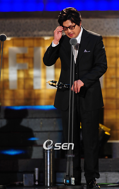 결국 ‘추격자’ 김윤석(40)을 쫓을 ‘추격자’는 없었다. 27일 서울 삼성동 코엑스 컨벤션홀에서 열린 제 45회 대종상 영화제. 남우주연상 수상자로 김윤석의 이름이 장내에 울려퍼지자 잔인한 도박꾼 아귀이자 야비한 악덕 포주였던 그 남자는 감격에 겨워 두 손으로 얼굴을 가렸다. 김윤석은 ‘추격자’의 또 다른 주인공 하정우와 ‘밀양’의 송강호, ‘스카우트’의 임창정, ‘행복’의 황정민 등 쟁쟁한 후보들을 물리치고 이날 웃었다. "공로상이나 탈 줄 알았다"고 울먹였던 수상 소감은 늦깍이 스타의 속마음을 그대로 드러냈다. 그러나 이날 시상식 장에서는 일찍부터 김윤석의 남우주연상 수상을 점쳐보는 이들이 많았다. 그 이유는 식전 행사인 레드카펫에 수상자 김윤석을 제외하고는 하정우, 송강호, 임창정, 황정민 모두 모습을 나타내지 않았던 것. 이를 두고 시상식 전부터 ‘남우주연상은 김윤석이 차지할 것이다’는 의견이 분분했다. 김윤석은 2006년 영화 ‘타짜’에서 악역인 아귀 역을 맡으며 관객들에게 깊은 인상을 남겼고, 2008년 550만 관객을 동원하며 많은 화제를 낳았던 영화 ‘추격자’에서는 전직 형사 중호 역으로 양심의 가책이라고는 찾아볼 수 없는 출장 안마소 사장 역을 훌륭히 소화했다. 이로써 김윤석은 '타짜'와 '추격자' 두 번의 강한 악역으로 남우주연상을 손에 넣게 된 것이다. 김윤석은 “나홍진 감독과 같이 한 5개월은 지옥이었지만 내 생애 최고의 순간이었다. 나를 빛나게 해 준 하정우에게도 감사한다"고 소감을 밝혔다. 2008년 영화계를 뒤흔든 나홍진 감독의 영화 ‘추격자’는 이번 대종상 영화제에서 11개 부문에 노미네이트, 작품상과 감독상을 비롯해 남우주연상, 촬영상, 기획상, 인기상 등 6개 부문을 휩쓸었다. ricky337@osen.co.kr