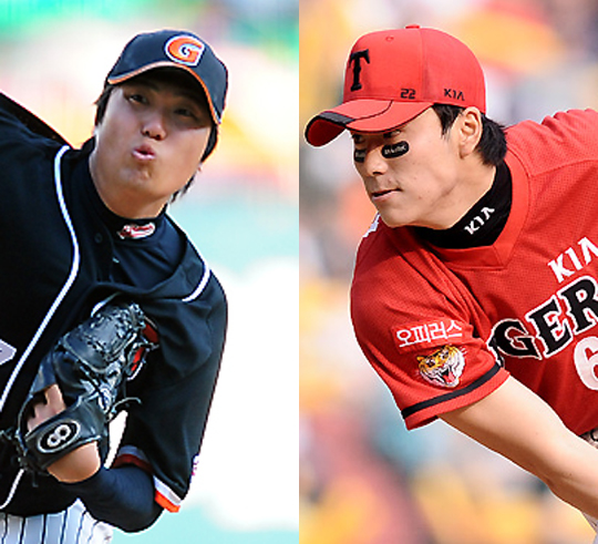 4연패 탈출을 노리는 롯데 자이언츠와 3연승에 도전하는 KIA 타이거즈가 28일 부산 사직구장에서 주말 3연전 두 번째 대결을 벌인다. 궁지에 몰린 롯데는 우완 조정훈(23)을 선발 예고했다. 올 시즌 두 차례 마운드에 올라 완벽에 가까운 투구를 선보이며 거인 마운드의 차세대 에이스 탄생을 예고했던 조정훈은 지난달 8일 사직 한화전에서 7이닝 7피안타 2볼넷 2탈삼진 2실점 호투하며 데뷔 첫 선발승을 따내는 듯 했으나 구원 투수가 역전을 허용하는 바람에 아쉬움을 곱씹었다. 22일 잠실구장에서 열린 LG와의 원정 경기에 선발 투수로 마운드에 올라 9이닝 4피안타 2볼넷 8탈삼진 무실점으로 데뷔 첫 선발승을 완봉승으로 장식했다. 지난 24일 마산 SK전 이후 4연패에 빠진 롯데를 살리기 위해 조정훈의 어깨가 무겁다. 그러나 자신감은 가득하다. 위기에 처한 팀을 자신의 손으로 구할 각오다. 전날 경기에서 득점 찬스를 잡았으나 집중력 저하로 점수로 연결시키지 못한 부분은 못내 아쉽다. 후속 타자들이 찬스를 살렸다면 연패 탈출이 가능했을지도 모른다. 타자들의 집중력이 절실한 시점인 셈이다. 3연승을 노리는 KIA는 우완 강속구 이범석(23)을 선발 투수로 내세워 상승세를 이어갈 태세이다. 지난해 승리 없이 3패 1홀드(방어율 4.64)에 그쳤던 이범석은 올 시즌 15경기에 출장, 4승 4패(방어율 3.32)로 급성장했다. 20대 초반의 어린 나이와 150km에 육박하는 묵직한 직구는 그의 밝은 미래를 보여주는 대목. 롯데전에 한 차례 등판, 1⅔이닝 1탈삼진 무실점으로 승패없이 방어율 0.00을 기록했다. what@osen.co.kr 조정훈-이범석.