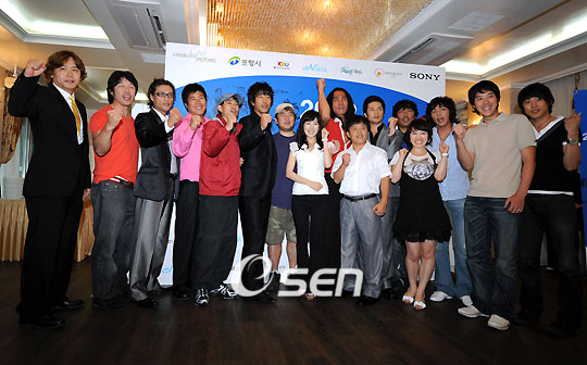 내년 상반기 방송 예정으로 제작에 들어간 드라마 ‘2009 외인구단’의 고사 및 기자 간담회가 2일 오후 포항시 파인비치호텔에서 열렸다. 이현세 작가의 인기 만화를 원작으로 하고 있고 윤태영 박성민 박정학 송아영 등이 주요 배역으로 캐스팅 됐다. 이 드라마는 현재 포항 칠포 해수욕장에서 아역 분량을 촬영하고 있어 고사를 포항에서 지내게 됐다. 드라마 출연진이 성공을 기원하는 파이팅을 외치고 있다. /포항=강희수 기자 100c@osen.co.kr