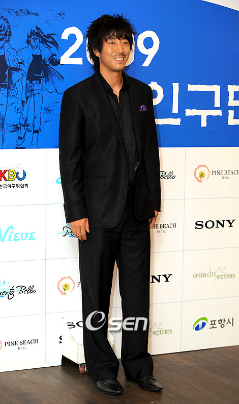 내년 상반기 방송 예정으로 제작에 들어간 드라마 ‘2009 외인구단’의 고사 및 기자 간담회가 2일 오후 포항시 파인비치호텔에서 열렸다. 이현세 작가의 인기 만화를 원작으로 하고 있고 윤태영 박성민 박정학 송아영 등이 주요 배역으로 캐스팅 됐다. 이 드라마는 현재 포항 칠포 해수욕장에서 아역 분량을 촬영하고 있어 고사를 포항에서 지내게 됐다. 오혜성 역을 맡아 까치머리를 한 윤태영이 포토타임을 갖고 있다. /포항=강희수 기자 100c@osen.co.kr
