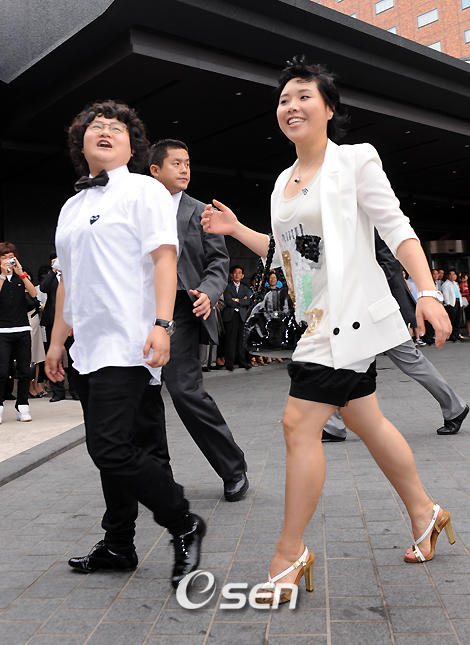 개그맨이자 MC인 유재석(36)이 6일 오후 1시 서울 중구 신라호텔에서 교제 사실을 밝혀온 MBC 아나운서 나경은(27)과 비공개로 결혼식을 올린다. 사회는 유재석의 절친한 친구인 이휘재, 주례는 MBC 아나운서 출신의 변웅전 국회의원이 맡으며 가수 김종국과 개그우먼 송은이가 축가를 부른다. 유재석 나경은 결혼을 축하하기 위해 참석한 김신영과 신봉선이 결혼식장에 들어서고 있다./윤민호 기자 ymh@osen.co.kr