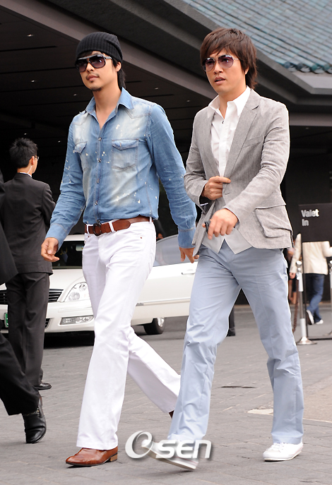 개그맨이자 MC인 유재석(36)이 6일 오후 1시 서울 중구 신라호텔에서 교제 사실을 밝혀온 MBC 아나운서 나경은(27)과 비공개로 결혼식을 올린다.사회는 유재석의 절친한 친구인 이휘재,주례는 MBC 아나운서 출신의 변웅전 국회의원이 맡으며 가수 김종국과 개그우먼 송은이가 축가를 부른다.유재석 나경은 결혼을 축하하기 위해 참석한 강현수와 김정민이 결혼식장에 들어서고 있다./윤민호 기자 ymh@osen.co.kr