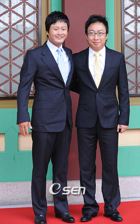 개그맨이자 MC인 유재석(36)이 6일 오후 1시 서울 중구 신라호텔에서 교제 사실을 밝혀온 MBC 아나운서 나경은(27)과 비공개로 결혼식을 올린다. 사회는 유재석의 절친한 친구인 이휘재, 주례는 MBC 아나운서 출신의 변웅전 국회의원이 맡으며 가수 김종국과 개그우먼 송은이가 축가를 부른다. 결혼식에 앞서 하객으로 온 공형진 박명수가 포토타임을 갖고 있다. /민경훈 기자 rumi@osen.co.kr
