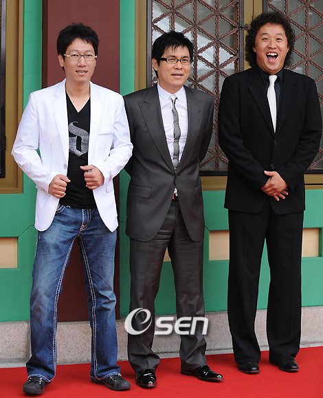 개그맨이자 MC인 유재석(36)이 6일 오후 1시 서울 중구 신라호텔에서 교제 사실을 밝혀온 MBC 아나운서 나경은(27)과 비공개로 결혼식을 올린다. 사회는 유재석의 절친한 친구인 이휘재, 주례는 MBC 아나운서 출신의 변웅전 국회의원이 맡으며 가수 김종국과 개그우먼 송은이가 축가를 부른다. 결혼식에 앞서 하객으로 온 지석진 김용만 정준하가 포토타임을 갖고 있다. /민경훈 기자 rumi@osen.co.kr