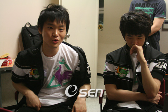 "우리에요. 우리. 소감은 필요없어요". 입담이 좋기로 소문난 전태규(24, 온게임넷)은 기적같은 6연승으로 팀이 포스트시즌에 진출한 소감에 대해 유머스럽게 답하면서 활짝 웃었다. 파트너인 박명수(21)는 "기뻐요"라며 짤막한 소감을 밝혔다. 8일 서울 용산 e스포츠 상설경기장서 열린 프로리그 온게임넷과 르까프의 경기는 정말 보기 드문 장면이 발생했다. 0-2로 뒤진 상황서 전태규-박명수 조합의 반격을 시작으로 온게임넷이 짜릿한 3-2 역전승에 성공한 것. 0-2로 밀리는 벼랑끝의 상황서 전태규-박명수 조합은 11시 5시로 자리까지 최악이 나왔지만 팀의 맏형답게 위기를 기회로 돌려세웠다. 저돌적인 공격으로 12시에 있는 손찬웅을 밀어내고, 3시에 홀로남은 김경모를 정리하며 추격의 발판을 마련했다. 다음은 일문일답. - 기적같은 포스트시즌 진출이다. 승리한 소감은. ▲ 전태규=우리에요. 우리. 소감은 필요없죠. ▲ 박명수=기뻐요. - 상황이 정말 좋지 않았다. 0-2로 뒤져있었고, 자리마저 최악의 자리라고 불리는 11시 5시 였는데. ▲ 전태규=상대 자리를 보고 좌절했고, 또 빌드를 보고 좌절했다. 그래서 선택한 것이 '에라 모르겠다' 올인 러시였다. ▲ 박명수=그냥 나의 자리를 보고 좌절했다. 3시 오버로드를 보면서 좌절했다. 12시 상대 프로토스를 보고 또 한 번 좌절했다. 그러나 상대방 저그가 스포닝풀이 아닌 해처리를 올리면서 이길 수 도 있겠다는 생각을 했다. - 시즌 초반 어렵게 시작했다. 2라운드 부터 투입 돼 팀에 공헌을 많이 했지만 아쉬움도 클 것 같다. ▲ 전태규=너무 아쉽다. 우리가 광안리 직행이었다. 또 팀플레이 조합상과 다승왕 모두 우리꺼였다. 많은 아쉬움이 있지만 포스트시즌 올라갔다는 사실에 만족하고 싶다. ▲ 박명수=솔직히 올라갈 줄 몰랐다. 그런데 갑자기 이런 일이 생겨서 당황스러울 뿐이다. 또 기쁘기도 하다. - 마지막으로 한 마디를 더 한다면. ▲ 전태규=예전에는 항상 우리 팬들이 먼저였다. 그러나 오늘만큼은 안티 분들을 위해 여러가지 행동과 인터뷰를 했다. 오늘은 안티분들께서 어떤 식으로 우리를 '까도' 기쁘게 받아들이겠다. 너무 기쁜 날이다. ▲ 박명수=6연승을 달성해서 정말 기쁘고 팀도 포스트 시즌에 진출해서 더 기쁘다. 한마디를 한다면 내가 팀을 구원한 것은 맞는 것 같다.