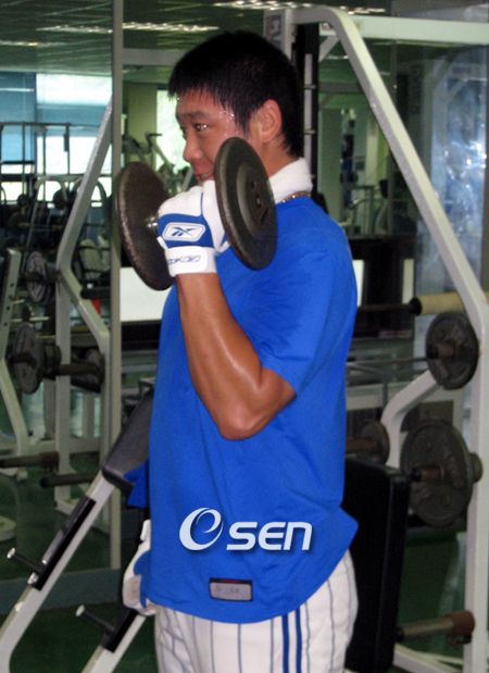 1군 복귀를 향한 조동찬(25, 삼성)의 열정은 한여름의 태양보다 뜨거웠다. 30도를 웃도는 더위 속에서도 자신과의 싸움에서 지지 않으려는 그의 눈빛은 매서웠다. 오른쪽 어깨 통증으로 지난 5월 30일 1군 엔트리에서 제외된 조동찬은 경산 볼파크에서 누구보다 굵은 땀방울을 쏟아내며 훈련을 소화중이다. 지난 2002년 프로 데뷔 후 팀내 최고의 유망주로 손꼽혔던 조동찬은 지난해 오른쪽 어깨 수술을 받은 뒤 올 시즌 해외 전훈 캠프에서 맹훈련을 거듭하며 유망주라는 꼬리표를 떼낼 각오였으나 어깨 부상에 발목 잡혔다. 6일부터 본격적인 타격 훈련에 돌입한 조동찬은 미소를 잃지 않았다. 어깨 통증도 사라졌고 조금씩 송구 거리로 늘리고 있다. "타격할때 통증은 전혀 없다. 현재 30m 캐치볼을 소화 중이지만 조금씩 거리를 늘리는 중이다". 김용일 재활군 트레이닝 코치는 "동찬이가 공던지기 시작한지 열흘이 지났다. 지명 타자로 뛴다면 당장이라도 2군 경기에 뛸 수 있지만 외야수로 나서기 위해서는 어깨 근육을 강화시켜 이르면 다음 주말쯤 2군 경기에 참가할 수 있을 것"이라고 전망했다. 장타력과 도루 능력을 겸비한 조동찬이 1군 무대에 가세한다면 천군만마를 얻은 격이나 다름없다. 선동렬 삼성 감독은 올 시즌 '호타준족' 조동찬의 활용 범위를 넓힐 계획이었으나 뜻하지 않은 부상에 아쉬움을 곱씹었다. 채태인(26), 최형우(25), 박석민(23)과 더불어 삼성 타선의 미래를 책임질 조동찬이 1군 무대에 돌아올 날도 머지 않았다. what@osen.co.kr