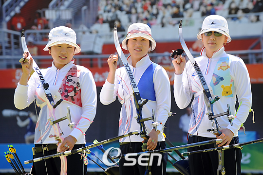 "누가 되든 우리나라 선수가 금메달을 따면 좋겠죠"(박성현). "개인전도 욕심이 나는 것은 사실이다"(주현정).. 낙타가 바늘구멍을 통과하는 것보다 더 어렵다고 해도 과언이 아닌 치열한 경쟁을 뚫고 한국 여자양궁 대표선수 3인방. 개인전 금메달 7연패를 노리는 여자양궁이 집안싸움을 위해 활시위를 당겼다. 지난 2000년 시드니올림픽에서 나란히 금,은,동을 차지하며 여자양궁 개인전 세계최강임을 자랑한 대표팀은 2004년 아테네 올림픽에서도 한국 선수들끼리 결승전을 치르며 효자종목임을 증명했다. 하지만 한국 양궁인들이 해외에 진출해 감독직을 맡으면서 집중 견제를 받고 있는 상황이다. 그럼에도 1984년 로스앤젤레스 올림픽의 서향순을 시작으로 이어진 여자개인전 7연패 전선은 여전히 파란불이다. 아테네 대회 2관왕으로 개인전 2연패를 노리고 있는 박성현(25, 전북도청)은 "크게 욕심을 내지 않는다"며 속내를 감췄다. "한국 선수 누구든지 금메달을 따면 좋겠다"고 각오를 대신했다. 반면 첫 올림픽 출전인 맏언니 주현정(26, 현대모비스)은 속마음을 숨기지 않았다. 주현정은 "개인전도 욕심이 난다"며 포부를 밝혔다. 언니들에 뒤질 세라 막내 윤옥희(23, 예천군청)도 개인전서 메달을 목표로 하고 있다. 집안싸움이 되어 한국팬들이 편안한 마음으로 결승전을 지켜볼 수 있을지 기대된다. 7rhdwn@osen.co.kr 윤옥희-주현정-박성현.