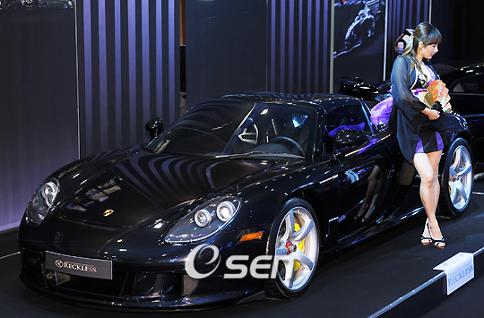 올해로 6회째를 맞는 국내 최대의 자동차 애프터마켓 및 튜닝 산업 전시회 ‘2008 서울오토살롱(SAS 2008)’이 서울 삼성동 코엑스 태평양홀에서 10일(목)부터 13일(일)까지 4일동안 세계적인 슈퍼카들과 레이싱모델의 향연 속에 화려하게 개최된다. 레이싱 모델 윤정아가 포르쉐 까레라(CARRERA) GT 앞에서 포즈를 잡고 있다. /민경훈 기자 rumi@osen.co.kr