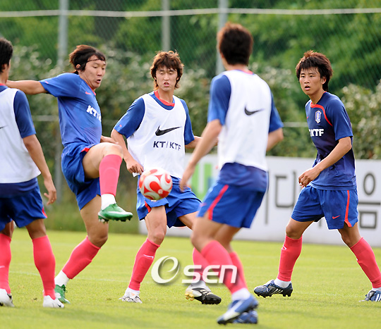 "히딩크 감독이 지켜 보는 것에 크게 부담 없었다". 올림픽 사상 첫 메달을 노리고 있는 박성화호가 10일 파주 트레이닝센터(NFC)에서 자체 연습경기를 실시했다. 2002 한일 월드컵과 유로 2008 4강 신화를 이룩한 거스 히딩크 러시아 감독이 지켜 보는 가운데 3피리어드를 치른 올림픽 대표팀은 다양한 선수 기용을 통해 여러 가지 전술을 시험했다. 그동안 무릎 부상으로 연습에 참가하지 못했던 '영록바' 신영록(21, 수원)은 이날 연습경기에 출장, K리그서와 같이 자신감이 넘치는 모습이었다. 신영록은 "그라운드서 다시 뛸 수 있는 것 자체가 행복하다"고 기쁨을 나타낸 뒤 "체력적으로 부족함이 느껴지지만 계속 경기에 나서다 보면 좋아질 것이다"고 소감을 밝혔다. 이어 그는 "기존의 공격수들과는 모두 대표팀서 자주 만났기 때문에 큰 부담은 없다"며 "모두 적응을 잘하고 있기 때문에 열심히 하면 더욱 좋아질 것으로 생각한다"고 전했다. 4일간 휴식을 취한 신영록은 "힘들지는 않았다"면서 "자꾸 공격력이 부족하다고 생각하면 더욱 그렇게 느껴진다. 그런 점을 탈피하기 위해 더욱 노력하겠다"고 답변했다. 한편 히딩크 감독이 지켜 보는 가운데 연습경기에 임한 신영록은 '명장'의 부담감을 전혀 느끼지 않았다. 신영록은 "히딩크 감독이 보고 있는 것에 대해 크게 생각하지 않았다"면서 "메달 따라는 말과 열심히 하라는 조언을 해주었다"고 짧게 대답했다. 10bird@osen.co.kr 10일 연습경기 중 신영록(왼쪽)이 문전에서 볼을 컨트롤하고 있다./파주=김영민 기자ajyoung@osen.co.kr