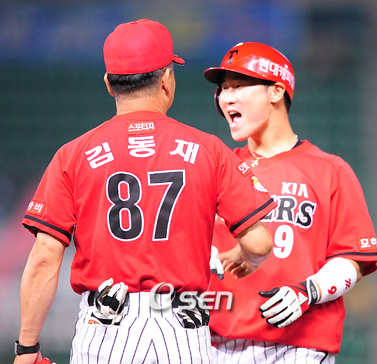 KIA가 9회초 터진 전 SK맨 김형철의 극적인 역전 결승타로 함박 웃음을 지었다. KIA는 11일 인천 문학구장에서 열린 2008 삼성 PAVV 프로야구 SK와의 원정경기에서 9회초 이현곤의 동점타와 김형철의 역전타로 2득점하며 승부를 뒤집어 2-1의 짜릿한 역전승에 성공했다. 0-1로 뒤진 9회초 2사 1, 3루에서 터진 이현곤의 우전적시타로 1-1 동점을 만든 KIA는 계속된 2사 1, 3루에서 대타 김형철의 중전적시타까지 성공하며 2-1로 승부를 뒤집었다. 특히 김형철은 지난 5월 4일 전병두, 김연훈을 SK에 내주고 채종범, 이성우와 함께 KIA로 온 전 SK맨이었다. 결국 KIA는 9회말 마무리 한기주를 마운드에 올려 1점차 리드를 끝까지 지켜내 시즌 18세이브(1승 2패)를 올렸다. SK 마무리 정대현은 블론세이브를 기록한 것은 물론 시즌 2패(2승 18세이브)째를 떠안았다. 이로써 2연패에서 탈출한 KIA는 시즌 39승 35패를 기록하며 다시 상승 무드를 탄 것은 물론 SK와의 상대 전적도 2승 9패로 호전시켰다. 반면 선두 SK는 7월 들어 7패(2승)째로 시즌 54승 28패로 슬럼프 장기화 가능성을 보였다. 더구나 이날 롯데에 승리한 2위 두산과도 승차가 '6'으로 줄었다. 선취점은 SK의 몫이었다. SK는 4회 정근우의 공격적인 주루플레이와 상대 선발의 폭투로 선취점을 올렸다. 정근우의 중전안타로 포문을 연 SK는 박재홍 타석 때 KIA 선발 디아즈의 폭투로 무사 3루 기회를 맞았다. 정근우는 2루를 돌아 3루까지 내달리는데 성공했다. 박재홍이 삼진으로 물러나 1사 3루. 디아즈가 김재현을 상대로 던진 초구가 빠지며 김재현의 등 뒤로 날아가 공이 백네트로 흐르는 사이 정근우는 여유있게 홈을 밟았다. 문제는 그 공이 김재현의 몸에 스치지 않았나 하는 것. KIA 조범현 감독은 이를 두고 오석환 주심에게 5분 동안 강력하게 어필했다. 이에 4명의 심판진이 모여 상의를 거쳤지만 결국 번복되지 않았다. 6회까지 무실점으로 버틴 채병룡은 7회 2사 2루에서 정우람과 교체됐다. 그러나 정우람이 실점없이 이닝을 무사히 막아 채병룡은 자책점 없이 임무를 마쳤다. 6⅔이닝 동안 3피안타 3삼진 3볼넷으로 무실점, 평균자책점을 2.65에서 2.44로 낮췄다. 그러나 9회 승부가 뒤집히며 다잡은 8승을 허공에 날리고 말았다. KIA 선발 디아즈는 6이닝 동안 5피안타 2폭투 3삼진 1볼넷으로 1실점, 비교적 호투했다. letmeout@osen.co.kr '2008 삼성 PAVV 프로야구' SK 와이번스와 KIA 타이거즈의 경기가 11일 인천 문학구장에서 벌어졌다. 9회초 2사 주자 1,3루 KIA 김형철이 중견수 앞 역전 1루타를 날린 후 김동재 1루수 코치와 하이파이브를 하고 있다. /인천=민경훈 기자rumi@osen.co.kr