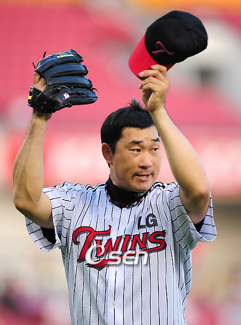 "뽑아 주신다면야 영광이죠" LG 트윈스가 자랑하는 선발진의 주축 봉중근(28)이 무실점 쾌투를 펼치며 시즌 8승(5패)째를 수확했다. 봉중근은 13일 잠실 삼성전에 선발 등판, 7⅔이닝 7피안타(탈삼진 3개, 사사구 1개) 무실점 쾌투를 선보이며 올시즌 팀의 첫 3연전 싹쓸이를 이끌었다. 봉중근은 이날 경기서 최고 146km의 직구를 주로 구사하며 총 91개의 투구수를 기록했다. 함께 호흡을 맞춘 포수 김정민은 "가장 직구 구위가 떨어지는 날이었던 것 같다. 직전 피칭(8일 잠실 두산전)서의 피로도가 쌓였고 승리도 올리지 못했던 터라 경기 초반 140km에도 미치지 못하는 공을 던졌는데 직구 위주로 주문했더니 점점 나아지는 피칭을 보여줬다"라고 이야기했다. 단상 및 방송 인터뷰가 끝나고 덕아웃으로 내려온 봉중근은 "두산전서 9이닝 2실점으로 승리를 놓친 경기는 잊었다. 아쉽기는 했지만 이후 평소대로 훈련하며 등판을 준비했다"라고 밝혔다. 김정민의 이야기를 전하자 봉중근은 "날이 더워서 구위가 초반에 안 올라왔던 것 같다. 직구 스피드나 제구 면에서 초반 기대에 미치지 못했는 데 야수들이 수비를 잘해줬다"라며 야수들에게 공을 돌렸다. 상대 4번 타자 박석민에게 3타수 3안타로 고전한 데 대한 질문에 그는 "워낙 박석민의 스윙이 좋았다. 오늘 게임서 가장 스윙이 좋았던 타자였던 것 같다"라며 혀를 내두른 뒤 교체 상황에 대해 "최근 계투 투수들의 활약이 좋아 완투 등을 욕심내지 않고 계투진을 믿고 마운드를 내려왔다"라고 말했다. 지난 시즌(6승 7패 방어율 5.32)과는 다른 활약상에 대해 묻자 봉중근은 "지난해에는 많이 부족했다. 부상도 있어 구위를 뽐내기 어려웠는데 올시즌 앞두고 정말 많은 훈련을 했다. 어깨 근력도 많이 보강하고 러닝 훈련도 열심히 하면서 직구 구위도 살아난 것 같다"라며 비결을 이야기한 뒤 "직구 구위 향상으로 공격적인 피칭을 할 수 있게 된 것이 가장 큰 발전상인 것 같다"라며 자신의 활약을 자평했다. 오는 8월 열리는 베이징 올림픽에 관련한 질문에 봉중근은 "다시 뽑히게 된다면 대단한 영광일 것이다. 2006년 월드 베이스볼 클래식(WBC) 참가를 계기로 한국 무대에 복귀할 수 있었던 만큼 다시 뽑히게 된다면 더욱 열심히 하겠다"라며 태극마크에 대한 희망을 숨기지 않았다. 한편 승장 김재박 감독은 "선발 봉중근이 호투를 펼쳤고 뒤이어 등판한 이재영과 정재복이 좋은 피칭을 선보였다. 계투진이 점차 안정되어 가고 있는 것이 승리의 요인이었던 것 같다"라며 3연전을 모두 승리로 장식한 기쁨을 감추지 못했다. farinelli@osen.co.kr 13일 잠실 LG-삼성전서 LG 선발 봉중근이 8회초 2사 1루에서 이재영에게 마운드를 물려주고 내려오며 팬들에게 인사를 하고 있다./잠실=손용호 기자spjj@osen.co.kr