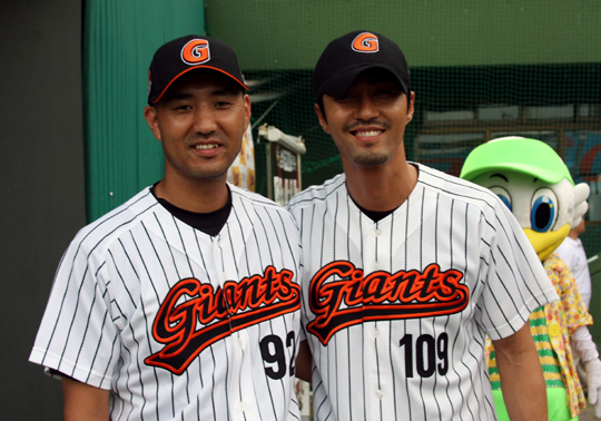제리 로이스터 롯데 감독 특별 보좌역 커티스 정(36)의 별명은 야구계의 차승원. 커티스 정은 훤칠한 외모와 근육으로 다져진 몸매로 여성 팬들에게 큰 인기를 끌고 있다. 밀려드는 사인 요청은 생활의 일부분이라고 표현해도 과언이 아니다. 커티스 정과 차승원이 KIA-롯데전이 열리기 전 17일 사직구장에서 첫 만남을 가졌다. 닮은꼴의 첫 만남은 지난 11일 사직 두산전 시구에 나섰던 곽경택 영화 감독의 도움이 컸다. 이날 경기 전 커티스 정과 만난 곽 감독은 '차승원과 만남의 자리를 마련해달라'는 구단의 요청에 흔쾌히 받아 들여 이번 만남이 이뤄졌다. 곽 감독은 오는 31일 개봉하는 액션 영화 '눈에는 눈 이에는 이'를 제작했고 차승원은 이 영화의 주연 배우. 커티스 정과 차승원은 처음 만나 쑥쓰러움을 감추지 못했다. '별로 닮지 않았다' 혹은 '키가 많이 다르다'는 예상외의 반응을 보이며 서먹한 분위기가 이어졌다는게 구단 관계자의 귀띔. 차승원을 만난 커티스 정은 "감독 보좌역을 맡은 뒤 차승원과 닮았다는 말을 많이 들었다"는 말을 건네자 차승원은 "올 시즌 롯데 경기를 보며 커티스 정에 대해 알게 됐다"고 화답했다. 로이스터 감독은 "두 사람이 많이 닮았다"고 분위기 메이커를 자청했다. 선수들은 '닮았다'를 연호하며 이들의 닮은 외모를 인정했다. 투수 출신 커티스 정은 이날 시구자로 나선 차승원의 투구폼에 대해 알려주며 관심을 드러냈다. 이날 차승원의 최고 구속은 104km. 등번호 109번을 달고 마운드에 오른 차승원은 "야구 동호회에서 109번을 사용하기 때문"이라고 설명했다. what@osen.co.kr 커티스 정-차승원 / 롯데 자이언츠 제공.