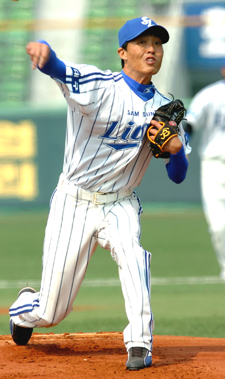 프로 19년차의 베테랑 우완 투수인 이상목(37)이 또다시 개인 통산 100승 달성에 실패했다. 이상목은 17일 대구구장에서 열린 우리 히어로즈와의 경기에 선발 등판, 4이닝 7피안타 4실점으로 승패없이 물러났다. 4회초까지 2-4로 뒤졌으나 팀타선이 4회말 공격서 2점을 뽑아 동점을 이루면서 패전 위기를 벗어났다. 그러나 삼성 벤치는 5회초 수비부터 이상목을 내리고 우완 안지만을 등판시켰다. 6월5일 LG전서 시즌 5승째이자 통산 99승을 올린 후 이날까지 7번째 100승에 도전했으나 무위에 그친 것이다. 팀타선이 홈런포를 터트려 3회까지 2-1로 앞섰으나 4회초 수비서 강정호의 적시 2타점 2루타 등 4안타를 맞고 3실점, 재역전을 허용해 승리 투수가 멀어졌다. 이상목은 직구 구속이 시속 130km 중반대에 머물면서 주무기인 포크볼도 빛을 발하지 못했다. 구속차가 크지 않아 완급조절이 쉽지 않았고 다른 변화구도 날카롭지 못해 팀타선의 지원에도 불구하고 승리를 따내지 못했다. 이상목은 지난 시즌 후 롯데에서 방출된 후 올해 고향팀 삼성으로 복귀, 시즌 초반에는 안정된 투구를 펼쳤으나 최근에는 힘이 떨어지면서 고전을 면치 못하고 있다. 1990년 대구 성광고 졸업후 곧바로 삼성에 입단, 19년간 프로로 활동해온 이상목은 한화시절인 2003년 15승을 올리는 등 꾸준한 활약을 보였으나 근년들어 구위가 예전만 못해 부진한 성적을 기록하고 있다. 최근 3연패 등 40일 이상 승리와 거리가 먼 이상목이 과연 언제쯤 ‘통산 100승의 꿈’을 이룰 것인지 주목된다. sun@osen.co.kr 삼성 라이온즈 제공 . . . . .