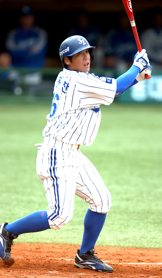 삼성이 대포를 앞세워 소총으로 맞선 우리 히어로즈를 제압했다. 2연승으로 5위에 복귀했다. 삼성은 17일 대구구장에서 열린 우리 히어로즈와의 경기에서 6회말 터진 대타 조동찬의 만루 홈런 등 홈런 3방에 힘입어 9-6으로 재역전승을 거뒀다. 선발 투수 이상목이 조기강판했으나 화끈한 홈런포를 앞세워 기분좋은 2연승을 구가하며 이날 롯데에 패한 KIA를 승률에서 제치고 5위로 올라섰다. 이날 경기의 승부처는 삼성의 6회말 공격이었다. 4-6으로 뒤진 삼성은 상대 투수진의 컨트롤이 흔들리는 틈을 타 만루 찬스를 만들었고 기막힌 대타작전으로 대성공을 거뒀다. 선두타자 최형우가 볼넷으로 출루한데 이어 1사후 히어로즈 구원투수들(송신영-조용훈)로부터 채태인과 김창희가 연속 몸에 맞는 볼로 출루, 1사 만루의 찬스를 잡았다. 여기서 삼성벤치는 히어로즈 사이드암 조용훈을 겨냥해 신인 좌타자 우동균을 대타로 내세웠고 히어로즈는 볼카운트 0-1에서 좌완 노환수로 교체했다. 그러자 삼성도 곧바로 우타자 조동찬을 타석에 내세웠고 조동찬은 좌측 펜스를 넘어가는 만루홈런포를 터트렸다. 삼성의 대타작전이 맞아떨어진 순간이었다. 팔꿈치 통증으로 50일간 재활하다가 지난 16일 복귀한 조동찬이 존재감을 드러낸 순간이기도 했다. 삼성과 히어로즈는 시종 공방전을 펼쳤다. 히어로즈가 먼저 득점하면 삼성이 홈런포 등으로 쫓아가 역전하는 형국이었다. 히어로즈가 1회초 공격서 톱타자 권도영의 2루타와 이택근의 적시타로 선취점을 올리자 삼성은 돌아선 말공격서 간판타자 양준혁이 우월 솔로 홈런을 날려 동점을 만들었다. 양준혁은 6월 25일 LG전 이후 22일만에 맛본 홈런포로 시즌 5호였다. 삼성은 여세를 몰아 3회에는 김창희의 시즌 첫 홈런포(좌월 솔로)로 첫 역전에 성공했다. 그러나 4회초 수비서 선발 이상목이 강정호에게 2타점짜리 적시 2루타 등 집중 4안타를 맞고 3실점, 역전을 허용했고 4회말 공격서 히어로즈 좌완 선발 이현승의 컨트롤 난조에 편승해 김창희의 적시타 등으로 2점을 뽑아 또다시 동점을 만들었다. 삼성은 5회초 수비에서 2점을 내줘 4-6으로 끌려갔으나 6회말 공격서 조동찬의 만루포로 재역전에 성공했다. 삼성은 8회말에는 박한이의 적시 2루타로 한 점을 추가, 승기를 굳혔다. 선발 이상목은 7번째 100승 도전에 나섰으나 4이닝 7피안타 4실점으로 또다시 실패했다. 8회 2사후 구원등판한 마무리 오승환은 무실점으로 경기를 매조지, 시즌 21세이브째를 올렸다. 히어로즈는 안타수에서는 11안타로 9안타를 친 삼성에 앞섰으나 투수진이 사사구를 10개씩이나 남발하는 바람에 역전패를 당했다. 전준호는 6회 유격수앞 기습 번트안타로 28게임 연속 출루에 성공했다. sun@osen.co.kr 조동찬=삼성 라이온즈 제공