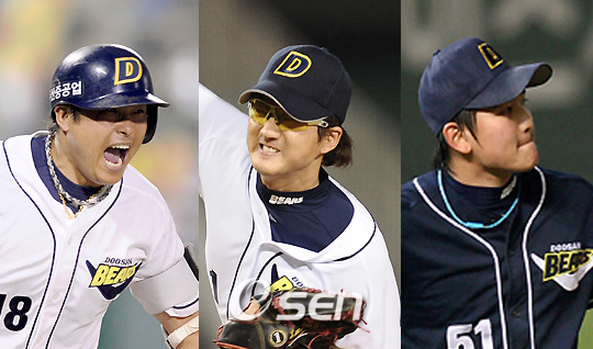 9연승 가도를 달리던 두산 베어스가 적지서 KIA 타이거즈에 2연패를 당하며 주춤거렸다. 2위(51승 35패, 21일 현재) 두산은 지난 15일부터 20일까지 4경기 동안 2승 2패를 기록했다. 선두(56승 30패) SK 와이번스를 제물 삼아 9연승 행진을 달리며 3게임 반 차까지 추격했던 두산은 선발진 구축으로 상승세를 타고 있는 KIA에 2연패하며 SK와 다시 5게임 차로 멀어졌다. 두산은 2승 2패를 거두는 동안 약점을 노출하며 앞으로의 숙제를 받았다. 바로 주포 김동주(32)의 공백을 메울 수 있는 대체자의 발굴 그리고 계투진의 체력 안배에 있다. 올시즌 2할9푼4리 14홈런 66타점(3위)을 기록 중인 김동주는 최근 발가락 부상 이후 오른쪽 허벅지에 근육통을 호소하는 등 잇단 부상을 당하며 KIA와 가진 2연전서는 출장하지 않았다. 그는 SK 전서도 2경기 동안 6타수 1안타 1타점으로 부진한 모습을 보이며 팀의 파괴력에 보탬이 되지 못했다. 김동주의 결장으로 3루는 2년차 내야수 오재원(23)이 지켰으며 4번 타자 자리는 3할4푼7리의 타율로 리딩 히터 자리에 올라 있는 김현수(20)가 나섰다. 오재원과 김현수 모두 제 몫을 해냈다. 오재원은 지난 19일 KIA전서 3회 적시타를 치는 등 4타수 2안타 1타점으로 활약한 동시에 3루 수비 또한 나쁘지 않은 모습을 보여줬다. 김현수 또한 4경기서 13타수 7안타(5할3푼8리) 3타점으로 활약하며 정확한 타격을 선보였다. 그러나 둘 모두 정확성과 장타력을 동시에 갖춘 김동주의 위력에는 미치지 못했다. 김경문 감독은 타선의 중량감을 높이기 위해 최근 2군서 절정의 컨디션을 발휘 중이던 1루수 최준석(25)을 20일 부로 1군 엔트리에 등록시켰다. 배팅 파워는 돋보이지만 정확성에서 불안감을 노출하고 있는 최준석이 기대에 미치지 못한다면 김동주의 부상 공백은 두산에 더욱 뼈아프게 다가 올 것이다. '승리 계투 듀오' 이재우(28)와 임태훈(20) 또한 아쉬운 모습을 보여줬다. 10승 1패 12홀드 방어율 1.02를 기록 중인 이재우는 3경기(3⅓이닝)서 1승 1홀드 방어율 2.70을 기록했으나 이닝 당 주자 허용 출루(WHIP)가 1.50에 달했다. 지난 18일 KIA전서는 이종범(38)에게 역전 2타점 2루타를 허용하며 역전을 허용하기도 했다. 올시즌 이재우의 선행 주자 득점 허용률은 37.1%(선행 주자 35명 중 13명 득점 허용)에 달한다. 50%가 넘기도 했던 시즌 초반에 비하면 많이 낮아진 상태지만 최근 다시 높아지고 있는 상황이다. 올시즌 선발 등판 없이 계투로만 등판한 이재우는 49경기에 등판해 62이닝을 소화하며 8개 구단 중간 계투들 중 가장 많은 이닝을 기록 중이다. 경기 출장 수는 59경기에 등판한 좌완 원포인트 릴리프 정우람(23. SK)에 이어 2위다. 41경기에 출장해 61⅓이닝을 던지며 이재우에 이어 두 번째로 많은 이닝 수를 기록한 임태훈은 더욱 심각하다. 최근 3경기서 1패 1세이브 방어율 7.73에 1.72의 WHIP을 기록한 임태훈은 17일 경기서 2이닝 퍼펙트로 세이브를 따내긴 했으나 나머지 2경기서는 제구력과 구위에 약점을 노출했다. 임태훈은 계투로만 등판한 투수들 중 가장 많은 투구수(1079개)를 기록 중이다. 이재우와 임태훈 외에도 두산은 커브의 떨어지는 각이 좋은 우완 김상현(28), 직구가 컷 패스트볼 형태로 꺾이는 스타일의 좌완 금민철(22)을 보유하고 있다. 그러나 확실한 믿음을 사지 못한 김상현이나 금민철은 이기는 경기가 아닌 뒤지고 있는 상황에 주로 등판하는 경우가 많다. 이재우는 두산이 7월에 치른 15경기 중 9경기에 등판했으며 임태훈은 8경기에 나왔다. 아무리 체력이 좋은 투수들이라도 한여름에 자주 등판하게 되면 팬들의 마음은 불안해지기 마련이다. 김동주의 부상과 이재우-임태훈의 난조로 어려운 경기를 펼친 두산. 주축 선수의 이탈과 부진을 확실하게 막아낼 수 있는 대체자가 나타나지 않는다면 곰들의 여름 나기는 결코 쉽지 않을 전망이다. farinelli@osen.co.kr 김동주-이재우-임태훈. . . . . .