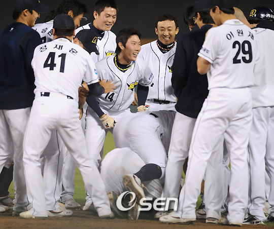 ‘끝장 승부’가 도입된 탓일까. 올 시즌은 유난히 ‘끝내기 안타’가 늘어나 팬들은 물론 선수들까지도 열광의 도가니로 몰아넣고 있다. 357게임을 소화한 올 시즌 현재까지 쏟아진 끝내기 안타 승부는 총 20경기이다. 지난 해 같은 기간에 14개가 나온 것과 비교하면 무려 42.9%나 증가된 수치이다. 연장전을 무승부 없이 무제한 승부제로 바꾼 결과이기도 하지만 마무리 투수 등 불펜진이 전반적으로 예년보다 못한 결과이기도 하다. 불펜진에 ‘믿을 맨’이 부족해지면서 경기 막판에 동점 상황이 연출되고 홈팀의 끝내기 안타가 빈번해지고 있는 것이다. 구단별 끝내기 안타 수치를 보면 불펜진의 강약과 연관이 있음을 알 수 있다. 올 시즌 선발진보다는 탄탄한 불펜진을 앞세워 호성적을 내고 있는 두산이 현재까지 4개로 끝내기 안타를 가장 많이 기록하고 있다. 그 다음이 SK, 한화, 우리 등이 3개이고 삼성, 롯데, LG 등이 2번, 그리고 KIA가 1번을 각각 마크하고 있다. 선수별로는 두산의 4번타자 김동주와 한화의 4번타자 김태균이 각 2번으로 가장 많이 때렷다. 역시 찬스에서 강한 ‘해결사’임을 알 수 있는 대목이다. 끝내기 안타는 그야말로 팬들을 열광시키는 최고의 요소이다. 팽팽하게 맞붙은 접전 상황에서 터져나오는 끝내기 안타는 홈팬들에게는 최고의 기쁨이다. 끝내기 안타의 순간을 경험한 홈팬들이 다음에도 경기장을 찾을 가능성이 높아지는 것은 당연한 일이다. 올 시즌 관중이 폭발적으로 증가하는 한 요인으로 끝내기 안타의 양산도 빼놓을 수 없을 듯 하다. 끝내기 안타는 팬들 뿐만 아니라 선수들에게도 짜릿함을 더해준다. 마치 한국시리즈 우승이라도 해낸 듯 선수들을 환희의 순간으로 몰아넣는 것이 끝내기 안타이다. 요즘은 끝내기 안타 세리모니가 너무 지나쳐서 자제하자는 목소리가 나올 정도로 선수들을 열광의 도가니에 빠트린다. 밀어넘어 트리고, 발로 차고, 머리를 때리는 등 끝내기 안타의 주인공은 팀동료들로부터 기분 나쁘지 않은 ‘구타’를 당하기 일쑤다. 자칫 부상으로 연결될까 위험한 순간이 연출되기도 한다. 무제한 승부제로 양팀 벤치는 다음 경기도 염두에 둬야 하는 선수단 운용을 하게 되면서 끝내기 안타는 예년보다 더 많이 나오는 것으로 분석된다. 덕분에 팬들과 선수들은 야구에 열광하고 그라운드로 달려오고 있는 2008 프로야구이다. sun@osen.co.kr 끝내기 안타를 때린 김동주를 두산 선수들이 넘어트리고 엎어지며 축하 세리머리를 펼치고 있다. 두산은 8개구단 중 올 시즌 가장 많은 끝내기 안타를 기록하고 있고 '해결사' 김동주가 선수 개인으로는 가장 많이 때리고 있다.