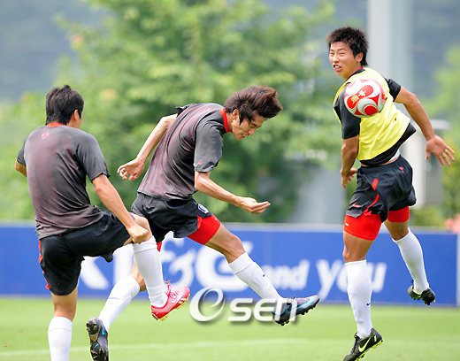 '포지션별로 특화시켜라'. 박성화 감독이 이끄는 올림픽 대표팀이 23일 오전 파주 NFC에서 공격전술 훈련을 가졌다. 이날 오전 훈련의 특징은 포지션별로 특화시켜 다양한 공격 부분전술을 시험한 것이다. 박성화 감독은 선수들을 네 파트로 나누었다. 박주영, 이근호 등이 최전방 공격수로, 김정우와 오장은 등이 중앙 미드필더로 나섰다. 좌우에는 각각 이청용과 김동진, 김승용과 신광훈 등이 사이드에서 크로스를 올리는 역할을 맡았다. 김진규과 강민수 그리고 김근환은 수비수로 나섰다. 네 파트로 나뉜 선수들에게 코칭스태프는 네 가지 상황을 주문했다. 첫 번째는 중앙에서 스루패스를 통해 최전방 공격수가 해결하는 것. 두 번째는 사이드로 공을 뺀 후 크로스를 올려 최전방에서 마무리하는 것이었다. 세 번째로는 중앙 미드필더와 최전방 공격수가 패스를 주고받은 후 미드필더가 중거리슈팅으로 마무리하는 것이고 마지막으로는 좌우에서 올라오는 크로스를 수비수가 걷어내는 상황이다. 이날 오전 훈련에서는 이근호와 백지훈이 좋은 모습을 보여주었다. 이근호는 좋은 슈팅을 수 차례 날리면서 골네트를 흔들었다. 백지훈 역시 날카로운 중거리슈팅으로 동료들의 박수를 받았다. 수비에서는 김진규가 좋은 모습을 보여주었다. 훈련이 끝난 후 박성화 감독은 "이미 시즌이 끝난 이탈리아 등은 엔트리를 확정한 후 훈련을 한 반면 우리는 K리그 일정 때문에 그러지 못했다" 면서 "시간이 부족한 만큼 효과적인 훈련이 필요하다" 고 말했다. 그는 "오후에는 체력훈련을 통해 선수들의 체력을 올릴 계획이다" 고 덧붙였다. bbadagun@osen.co.kr