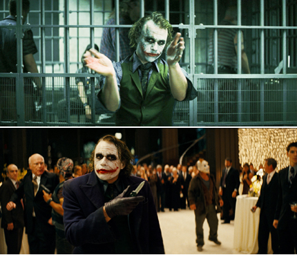 영화 ‘다크나이트’에서 히스 레저는 영화 사상 가장 독특한 악당이면서도 가장 소름 끼치는 악인 조커의 모습 그대로였다. 악당 조커 역을 맡은 히스 레저는 잭 니콜슨의 그림자를 지우고 또한 완벽한 캐릭터 창조를 위해 6주 동안 호텔에 칩거하며 ‘시계태엽 오렌지’, 코믹북 ‘더 킬링 조크’ 등을 참고해 역할을 연구하고 자세와 목소리를 바꿨다. 조커의 생각과 느낌을 일기로 정리하기도 했다. 역할에 너무 몰입한 나머지 불면증에 시달리고 심각한 히스테리 증세를 보이는 등 그의 죽음에 직접적인 영향을 끼친 것이 아니냐는 추측까지 돌았다. 이렇게 완성된 히스 레저의 조커를 보고 크리스토퍼 놀란 감독은 “감정 없는 정신분열증 살인광의 모습”이라고 극찬했다. 배트맨 역의 크리스찬 베일은 “히스 레저는 자신만의 지옥에 갇혀 있다가 이 역할을 위해 막 뛰쳐나온 것 같았다”며 “미친 것처럼 보일 수 있을 정도로 너무 완벽해서 섬뜩한 그의 분위기에 짓눌려 대사를 까먹는 경우가 많았다”고 밝혔다. ‘다크나이트’에서 조커는 무정부주위와 혼란을 부르짖으며 파괴로 이끄는 악의 지도자. 배트맨을 죽이기 위해서라면 뭐든지 하는 원초적인 악당이다. ‘다크 나이트’는 악의 도시 고담시를 배경으로 절대영웅 배트맨(크리스찬 베일)과 영원한 숙적 조커(히스 레저)의 운명을 건 대결을 그린 불록버스터. 8월 6일 개봉. crystal@osen.co.kr