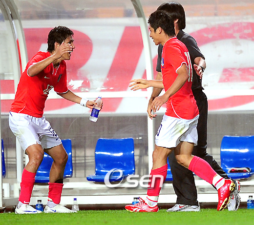 측면 전술은 성공적이었지만 공격 루트의 다양화가 필요하다. 박성화 감독이 이끄는 올림픽 대표팀이 27일 수원 월드컵경기장에서 열린 코트디부아르와 평가전서 골키퍼 정성룡과 이근호의 연속골에 힘입어 2-1 승리를 거두었다. 올림픽 본선 첫 경기인 카메룬에 대비한 '예비고사'였던 코트디부아르와 경기서 자신감을 얻은 대표팀은 숙달된 전술과 함께 새로운 공격 루트 개발이 필요한 것으로 나타났다. 올림픽 대표팀은 이날 이청용과 김승용을 선발 출장시켜 측면 공격을 예고했다. 또 돌파가 좋은 신광훈과 해외파 김동진을 포백에 포진시키며 측면 공격을 강화했다. 전반서 한국은 신광훈의 잦은 오버래핑을 통해 돌파를 시도한 뒤 문전으로 크로스를 올리며 많은 기회를 만들었다. 또 이청용도 수시로 오른쪽 돌파를 시도해 공격의 주도권을 가졌다. 하지만 대표팀은 중앙의 김정우와 기성용이 롱패스 연결을 통해 측면으로 연결할 뿐 중앙 돌파를 시도하지 못해 특별한 찬스를 얻어내지 못했다. 날카로운 패스가 이어지지 못하면서 최전방 공격수인 박주영과 이근호에게 기회가 오지 않아 어려움이 많았다. 후반서도 측면 공격의 의존도는 전혀 줄어들지 않았다. 그렇기 때문에 공격 효과가 크게 반감된 것이 사실. 물론 대표팀은 후반 18분 김동진이 왼쪽 돌파 후 올른 크로스를 이근호가 감각적인 슈팅으로 득점을 뽑아내며 카메룬전 예비고사를 잘 치렀다. 하지만 올림픽대표팀은 강력한 측면 공격과 함께 중앙 공격이 가미돼야 소기의 목적 달성에 도움이 될 전망이다. 10bird@osen.co.kr . . . . . 이근호(오른쪽)가 두 번째골을 넣은 뒤 어시스트한 김동진과 기쁨을 나누고 있다./수원=손용호 기자spjj@osen.co.kr