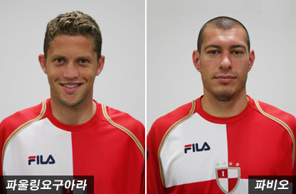 최하위 부산 아이파크가 외국인 교체를 통해 후반기 대도약을 노린다. 29일 부산은 외국인 선수인 미드필더 소우자와 포워드 헤이날도의 계약을 해지하고, 스웨덴과 스위스에서 각각 뛰었던 브라질 출신의 파울링요와 수비수 파비오를 영입했다고 발표했다. 공격수인 파울링요는 183cm, 77kg의 탄탄한 체격으로 지난 2002년부터 스웨덴 리그서 외국 생활을 시작해 올 시즌 12경기에 출전해 4골을 기록했다. 또 수비 강화를 위해 영입한 파비오는 186cm, 84kg의 건장한 체격을 가진 선수로 이탈리아와 스위스서 선수생활을 해왔다. 10bird@osen.co.kr 부산 제공.