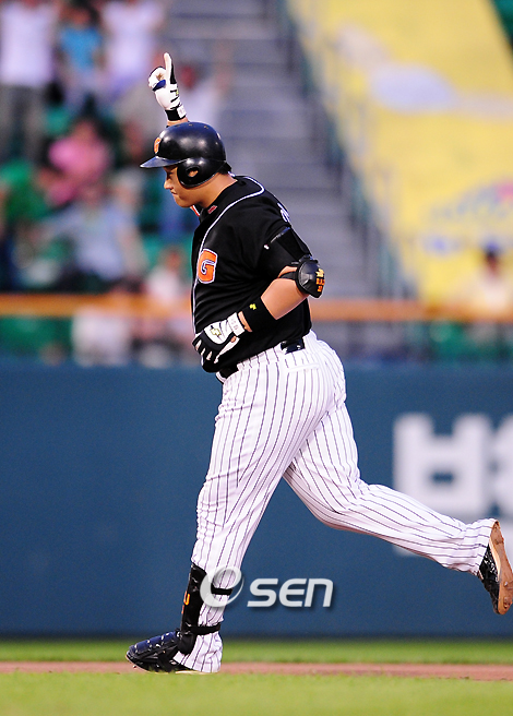 "후반기에 더 좋은 모습 보여주겠다" 올림픽 휴식기를 앞두고 다시 살아나는 모습을 보여 준 이대호(26. 롯데 자이언츠)가 팀이 4위를 달리고 있다는 데에 큰 의미를 두었다. 이대호는 31일 잠실 두산전 3-3으로 맞선 2회 무사 1루서 좌월 투런을 작렬하며 롯데 쪽으로 분위기를 가져오는 일등 공신이 되었다. 이대호의 홈런포는 결승포로 연결되어 더욱 값지게 빛났다. 최근 5경기서 16타수 10안타(6할2푼5리) 3홈런 10타점으로 활화산 같은 공격력을 과시 중인 이대호는 경기 후 "팀이 승리하면서 전반기를 4위(48승 46패)로 마칠 수 있게 되어 기쁘다"라며 팀을 먼저 생각하는 주포다운 모습을 보여주었다. 뒤이어 그는 "8월 베이징 올림픽을 위해 페이스를 더 끌어올린 뒤 후반기에는 더욱 좋은 모습을 보여줄 수 있도록 하겠다"라고 밝힌 뒤 최근 타격 상승세에 대해 "타격은 자신감이라고 생각한다. 자신감 있는 스윙을 펼치는 데 주력하자 공도 점점 배트 중심에 맞기 시작한 것이 비결인 것 같다"라며 비결을 밝혔다. 한편 승장 제리 로이스터 감독은 "잠실 3연전 모두 팀원들이 다같이 노력해서 좋은 결과가 나왔다. 장타자들이 적시타를 기록하는 등 좋은 활약을 보여줬고 경기 막판 좌완 강영식이 호투했다"라며 선수들에게 공을 돌렸다. 반면 패장 김경문 감독은 "전반기 마지막 경기를 이겼으면 좋았을 텐데"라며 아쉬움을 표한 뒤 "다행히 휴식기를 맞이하게 되었다. 후반기 부터 다시 좋은 경기력을 보여줄 수 있도록 노력하겠다"라며 남은 시즌 각오를 밝혔다. farinelli@osen.co.kr . . . . . 31일 잠실 두산-롯데 전 2회초 2사 주자 1루서 롯데 이대호가 좌월 투런 홈런을 날린 후 손가락을 치켜올리며 그라운드를 돌고 있다./잠실=민경훈 기자 rumi@osen.co.kr