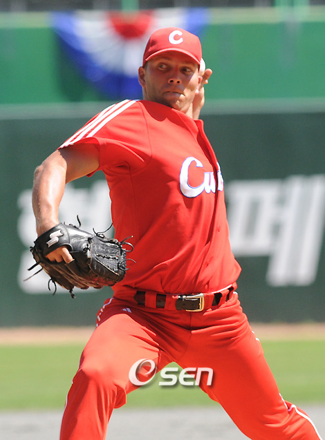 아마 최강 쿠바 대표팀이 몸 풀듯 유럽 강호 네덜란드 대표팀을 농락했다. 쿠바는 3일 오후 12시 30분 인천 문학구장에서 열린 네덜란드와의 친선경기에서 15개의 안타를 터뜨리며 10-0으로 대승을 거뒀다. 네덜란드는 5안타에 그쳤다. 쿠바 타선은 소문만큼 무서웠다. 1회부터 3회까지만 장단 8안타로 7득점해 일찌감치 승부를 결정지었다. 1회 1사 만루에서 프레데리티 세페다의 우익수 희생플라이로 선취점을 올린 쿠바는 알프레도 데스파이그네, 롤란드 메리뇨의 연속 적시타로 간단하게 3-0 리드를 잡았다. 쿠바는 2회 알렉산더 마제따의 중견수 희생플라이, 데스파이그네의 적시타로 2점을 보탰고 3회 요안드리 우르헬레스의 내야안타, 마제따의 2루수 땅볼로 2점을 추가했다. 이후 7회 1사 만루에서 1점, 8회 2점을 추가해 쐐기를 박았다. 쿠바 좌완 스리쿼터 선발 율리에스키 곤살레스는 최고 140km대 중반을 찍은 직구와 다양한 변화구를 앞세워 6이닝 동안 3피안타 4탈삼진 1사구로 무실점했다. 직구는 거의 던지지 않았지만 구속차를 이용한 완급조절과 안정된 컨트롤로 네덜란드 타선을 잠재웠다. 2회 선두타자 샤놀 아드리아나에게 이날 첫 안타를 내줬지만 다음타자 시드니 드종을 유격수 병살타로 처리했다. 또 5회에는 드종에게 2루타, 퍼시 이세니아에게 몸에 맞는 볼로 2사 1, 2루 위기를 맞기도 했다. 하지만 더크 반트 클루스터를 투수 땅볼로 처리, 무실점으로 이닝을 마쳤다. 6회 선두타자를 유격수 내야안타로 진루시킨 뒤 폭투로 잠시 흔들리기도 했지만 이후 타자를 간단하게 돌려세웠다. 곤살레스에 이어 나온 야디에르 페르도스(2이닝), 미겔 라에라 베탄(1이닝)은 남은 3이닝을 무실점으로 막았다. 네덜란드는 선발 알렉산더 스미트(1⅔이닝 5실점)가 일찍 무너진 후 핌 왈스마(3⅓이닝 2실점), 후안 카를로스 슐버란(1⅔이닝 1실점), 마이클 반 캠 펜(1이닝 2실점), 록 반밀(1⅓이닝 무실점) 이 차례로 마운드에 올랐다. 이날 양팀의 친선전은 오후 6시 30분에 열린 2008 삼성 PAVV 프로야구 올스타전에 앞서 시범경기 형식으로 치러졌다. 그러나 한국대표팀이 베이징올림픽 본선에서 맞상대해야 하는 양팀이라는 점에서 관심을 끌었다. 한국은 오는 19일과 20일에 각각 쿠바와 네덜란드를 상대한다. letmeout@osen.co.kr 쿠바 선발 율리에스키 곤살레스.