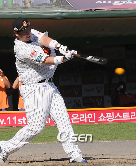 "흰색 공이 아니라서 그런지 잘 안보여요". 3일 문학구장서 벌어진 2008 삼성 PAVV 프로야구 올스타전 홈런레이스 출전자들이 공이 보이지 않는다며 모두 하소연을 털어놓았다. 이날 한국야구위원회(KBO)는 관객들의 흥미 유발을 위해 홈런 레이스 예선전과 결선에서 기존의 흰색이 아닌 별도로 제작된 황금색 야구공을 최초로 선보였다. 그러나 레이스에 출전한 8명의 국내 리그 선수 중 김태균(한화)과 박재홍(SK)이 3개씩 날렸을 뿐 나머지 6명의 선수(이범호, 클락, 가르시아, 이대호, 이진영, 브룸바)들은 2개 이상을 넘기지 못했다. 특히 가장 먼저 레이스에 나서 7아웃 동안 유일하게 단 1개의 공도 담장 밖으로 넘기지 못한 이범호(한화)는 "언제부터 공이 노란색으로 바뀌었냐"며 "흰색 공보다 잘 보이지 않는다"고 억울한 표정을 지었다. 1개의 홈런을 뽑은 이진영(SK)은 "일단 공이 맞으면 잘 뻗어나가는 것 같다"면서도 "그런데 공이 안보여 맞히기 힘들다"고 이범호의 의견에 동조했다. 2개를 친 이대호(롯데) 역시 "왜 이렇게 공이 보이지 않냐"며 너털 웃음을 지었다. 이에 이범호는 "선수들이 몇일을 쉬었기 때문에 아무래도 몸이 덜 풀린 탓도 있을 것"이라고 설명했지만 팀 동료 클락이 2개, 김태균이 3개의 홈런을 터뜨리자 "경기 전 케라시스(헤어 전문 브랜드) 광고까지 찍었는데 망했다"며 겸연쩍은 표정을 지었다. 그러나 한국 거포들은 3명의 쿠바 선수들이 각각 4개, 7개, 9개의 홈런을 차례로 뽑아내자 하나같이 혀를 내둘렀다. letmeout@osen.co.kr . . . . .