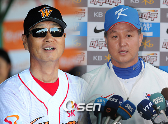 "내가 해설자로 가니 잘 부탁한다". 김성근(66) SK 감독이 두산 감독이자 베이징올림픽 대표팀을 이끌고 있는 김경문(50) 두산 감독에게 의미있는 당부의 인사를 전했다. 김성근 감독은 3일 인천 문학구장에서 열린 2008 삼성 PAVV 프로야구 올스타전 홈런 레이스가 한창 진행 중이던 1루 덕아웃에서 김경문 감독의 인사를 받았다. 김경문 감독은 기자 등 인파에 둘러싸인 틈을 헤집고 들어와 김성근 감독에게 공손하게 모자를 벗어 "안녕하십니까"라고 인사를 했다. 그러자 김성근 감독은 "어, 그래 왔냐"라고 웃음으로 반긴 후 "내가 해설자로 가니까 잘 부탁한다"고 답했다. 김성근 감독은 오는 13일 중국 베이징에서 열리는 올림픽 기간 동안 TV 중계 방송 해설자로 나선다. 일단 첫 경기인 미국전부터 중국, 캐나다, 일본까지 4경기 해설이 예정돼 있다. 이에 앞선 5~6일에는 잠실구장에서 열리는 쿠바와의 평가전 해설을 맡기로 했다. 1970년대 말 충암고 감독 시절 당시 동아방송 라디오에서 야구경기 해설을 맡은 적은 있다. 하지만 공중파 TV 야구 해설은 이번이 처음이다. 그런 만큼 김 감독은 좀더 많은 데이터를 가지고 한 발 빠른 해설로 야구를 지켜보는 시청자들에게 어필하고 싶어한다. 김성근 감독은 평소에서도 "야구해설자는 누구보다 팀 내부 사정을 잘 알아야 한다. 볼배합이 왜 그렇게 됐는지, 감독의 성향도 경기 운영에 영향을 미친다"며 "그런 만큼 야구해설자는 직접 야구팬들에게 지식을 전달해야 하는 만큼 많은 것을 알고 있어야 한다"고 말해왔다. 김성근 감독과 김경문 감독은 지난해부터 그다지 좋은 관계를 유지하지 못했다. 리오스의 투구 동작 등 각종 문제로 갈등을 빚었다. 지난해 한국시리즈에서 SK의 우승이 결정된 순간 김경문 감독이 김성근 감독을 찾아 악수를 청해 쌓였던 앙금이 모두 풀린 듯 보였지만 올해 다시 베이징올림픽 대표팀 선수 차출 문제로 다시 매끄럽지 못한 관계임을 드러내 보였다. 공교롭게도 이제 이번 대표팀을 이끄는 김경문 감독이 펼치는 야구를 분석하고 해설해야 하는 역할을 김성근 감독이 맡게 됐다. 이제 김성근 감독이 김경문 감독의 절실한 도움을 요청해야 하는 입장이 된 것이다. 그런만큼 '동군 올스타' 코칭스태프에 이어 '올림픽 메달'이라는 공통된 주제로 묶인 두 감독이 보여줄 하모니는 어떤 것일지 기대를 모은다. 두 김 감독은 이날 올스타전에 코칭스태로 소개받아 그라운드에 나란히 서서 이런저런 이야기를 정답게 나누는 모습을 보여 눈길을 모았다. 과연 이번 올림픽이 두 감독의 화해의 장으로도 각광받을지 궁금하다. letmeout@osen.co.kr 김성근 감독-김경문 감독.