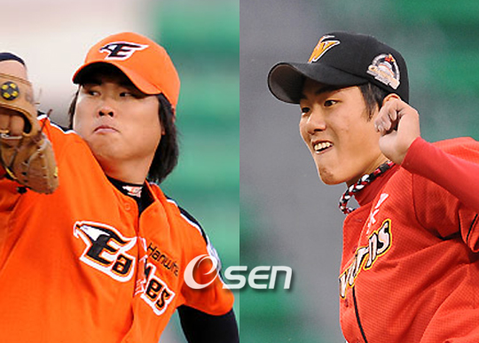김경문 감독이 이끄는 올림픽 대표팀의 원투 펀치 류현진(21, 한화)과 김광현(20, SK)이 건재를 과시했다. 지난 3일 인천 문학구장에서 열린 2008삼성PAVV 프로야구 올스타전에 감독 추천 선수가 참가한 류현진과 김광현은 나란히 무실점으로 상대 타선을 잠재웠다. 5회 서군 네 번째 투수로 마운드에 오른 류현진은 2이닝 2탈삼진 무실점으로 완벽투를 펼쳤다. 안타와 볼넷을 단 하나도 허용하지 않은 투구는 단연 돋보였다. 선두 타자 박경완을 삼진으로 돌려 세운 류현진은 조성환과 이종욱을 내야 땅볼로 유도, 5회 투구를 마무리지었다. 6회 대타 이진영과 최정을 각각 유격수 앞 땅볼, 포수 낫아웃으로 제압한 류현진은 톱타자 이대호를 우익수 뜬공으로 처리하며 한기주와 교체됐다. 류현진은 승리와 인연을 맺지 못했지만 우수 투수상을 거머쥐며 아쉬움을 달랬다. 김광현은 동군 선발 손민한(2이닝 3피안타 1탈삼진 1실점)-정우람(1이닝 1피안타 무실점)-배영수(1⅓이닝 1피안타 1실점)에 이에 네 번째 투수로 등판, 1이닝 1피안타 무실점으로 깔끔하게 틀어 막았다. 김광현은 5회 1사 후 선두 타자 김종국과의 대결에서 3루수 앞 땅볼로 아웃시킨 뒤 톱타자 이용규에게 내야 안타를 내줬지만 이종범을 중견수 플라이로 막아냈다. 6회 선두타자 덕 클락을 좌익수 뜬 공으로 유도, 아웃 카운트 하나를 잡은 김광현은 마운드에서 내려왔다. 김경문호의 좌완 원투 펀치 류현진과 김광현이 베이징 본선 무대에서도 괴물의 위력을 발휘할지 주목된다. what@osen.co.kr 류현진-김광현. . . . . .