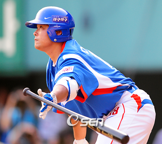 '국제용 선수'라는 수식어는 결코 과장되지 않았다. 아마 시절부터 국가대표 단골 손님으로 군림했던 '코뿔소' 김동주(32, 두산)가 호쾌한 방망이 실력을 뽐내며 건재를 과시했다. 팔꿈치 부상으로 두 차례 평가전에 나서지 않았던 김동주는 6일 잠실구장에서 열린 쿠바와의 두 번째 대결에 3루수 겸 5번 타자로 선발 출장, 3타수 1안타 3타점 1득점으로 15-3 승리를 견인했다. 코뿔소의 불방망이는 1회부터 달아오르기 시작했다. 이종욱과 이용규가 내야 땅볼로 물러난 뒤 이진영의 볼넷, 이승엽의 내야 안타로 만든 2사 1,2루서 좌익수 쪽 2타점 2루타를 터트렸다. 3회 볼넷을 골라 1루 베이스를 밟은 김동주는 진갑용의 중전 적시타로 홈을 밟아 첫 득점을 올렸다. 6-0으로 앞선 4회 1사 1,3루 추가 득점 찬스에서 세 번째 타석에 들어선 김동주는 유격수 앞 땅볼로 3루 주자 이용규를 홈으로 불러 들여 세 번째 타점을 올렸다. 6회 3루수 앞 땅볼로 물러난 김동주는 7회 대타 김현수로 교체됐다. 김동주는 이날 경기 후 인터뷰를 통해 쿠바 대표팀에 대한 경계를 늦추지 않았다. 김동주는 "쿠바는 절대 이런 팀이 아니다"며 "10%도 안보여줬다. 본선에서는 분명 달라질 것"이라고 힘줘 말했다. 이어 김동주는 첫 타석에서 2타점 2루타를 터트린 것에 대해 "2경기 동안 나오지 못해 안타보다는 팔을 점검한다는 생각이었다"며 "자고 일어나면 10분 동안 통증 때문에 고생한다. 3주 동안 아팠다. 도핑테스트 때문에 주사도 맞지 못하고 계속 쌓여 악화됐다. 그러나 올림픽에 나가면 참고 해야 하지 않겠냐"고 강한 근성을 드러냈다. what@osen.co.kr 한국 올림픽야구대표팀이 2008 베이징 올림픽을 앞두고 6일 오후 잠실구장에서 쿠바대표팀과 평가전을 가졌다. 1회초 2사 1,2루 김동주가 좌중간 2타점 적시타를 날리고 있다./잠실=민경훈 기자 rumi@osen.co.kr