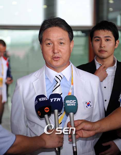 [OSEN=베이징, 올림픽취재반]"이제 보답하는 일만 남았다". 김경문 감독이 이끄는 베이징올림픽 한국야구대표팀이 중국 땅을 밟았다. 김 감독을 비롯한 코칭스태프, 24명의 대표팀은 10일 오후 2시(현지시간) 아시아나 항공편을 이용, 중국 베이징 서우두 공항에 도착했다. 24명의 선수들을 이끌고 나타난 김 감독의 표정은 그 어느 때보다 밝았다. 김 감독은 인터뷰를 통해 "한국에서 출발할 때의 기분과 중국 베이징에 도착했을 때의 기분이 분명 다를 것이라 생각한다"며 중국 입성 소감을 밝힌 후 "숙소에서 짐을 푼 후 곧바로 경기장으로 가서 연습을 할 생각"이라고 말했다. 김 감독은 "가장 중요한 것은 다른 팀에서 모인 선수들이 어색하지 않도록 만드는 것이었다"면서 "이제 형, 동생처럼 서로 잘 지내는 모습이 만족스럽다"고 말해 대표팀의 밝은 분위기를 전했다. 또 오는 13일 첫 경기인 미국전에 대한 대비에 대해서는 "페넌트레이스처럼 운영하지는 않겠다. 3일동안 페이스르 잘 조절해 미국전은 반드시 승리하도록 노력하겠다"며 "이길 수 있는 경기에는 곧바로 투수를 투입해 꼭 잡도록 하겠다"고 각오를 다졌다. 특히 "우리 선수들이 기량만 제대로 발휘해준다면 미국도 우리를 만만하게 생각하지 못할 것"이라며 "투수들도 휴식을 통해 컨디션이 좋고 타선도 터질 것이라 생각한다"라며 "선수와 코칭스태프가 뭉쳐 보답하는 길만 남은 것 같다"라는 말로 금메달 획득에 대한 강한 의지를 숨기지 않았다. 대표팀은 올림픽선수촌으로 이동한 후 오후 8시 15분부터 10시 15분까지 우커송 주경기장에서 적응 훈련에 나설 예정이다. 오는 13일 미국전을 앞둔 베이징올림픽 야구대표팀이 10일 오후 중국 서우두 국제공항으로 입국 하였다.김경문 감독이 취재진의 질문에 답변을 하고 있다./베이징=올림픽취재반