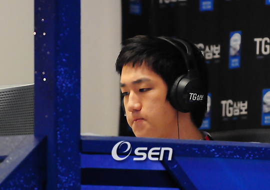 'TG삼보-인텔 클래식 2008 시즌1' 결승전이 10일 저녁 서울 신도림 테크노마트 11층 특설무대에서 열렸다. 이 자리는 '파괴신' 이제동(18, 르까프), '최종병기' 이영호(16, KTF) 두 본좌 후보들이 서로의 자존심을 걸고 한판 대결을 벌였다. 르까프 이제동이 1세트를 승리하고 입술을 꽉 깨물고 있다./민경훈 기자 rumi@osen.co.kr