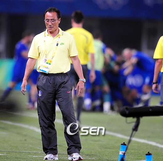 [OSEN=친황다오, 올림픽취재반] 박성화 감독이 이끄는 올림픽 축구 대표팀이 10일 중국 친황다오 올림픽스포츠센터 스타디움에서 열린 베이징올림픽 D조 2차전 이탈리아와 경기서 전반에 2골 그리고 후반에 1골을 내주며 무릎을 꿇고 말았다. 이로써 대표팀은 D조서 2승으로 승점 6점을 기록한 이탈리아와 1승1무로 승점 4점의 카메룬에 이어 승점 1점으로 3위에 머물렀다. 박주영-신영록-이근호로 이어지는 공격진으로 이탈리아에 맞선 대표팀은 상대의 '카테나초(빗장수비)'에 막혀 제대로 된 공격 찬스를 만들지 못했다. 특히 측면 돌파에 이은 크로스로 상대를 압박하려 했던 대표팀은 완벽한 준비를 해온 이탈리아의 수비에 막혀 문전으로 볼 배급이 여의치 않았다. 이탈리아는 왼쪽 측면 공격수로 나선 세바스티안 지오빈코가 중앙뿐만 아니라 오른쪽 측면으로 이동하며 공격에 변화를 주었고 이를 주세페 로시와 토마스 로키가 빈 공간을 메우며 한국을 압박했다. 전반 15분 주세페 로시에 득점을 내준 한국은 4-3-3에서 4-4-2로 전술적 변화를 통해 수비를 더욱 강화했다. 하지만 기성용과 김정우의 롱패스가 전혀 전달되지 못하며 공격 기회를 갖지 못한 한국은 이탈리아의 갑작스런 압박에 고전을 면치 못하다 전반 31분 로키에게 두번째 득점을 내주며 사실상 경기를 내주었다. 한국은 영패를 면하기 위해 후반 초반 백지훈과 이청용을 투입해 득점을 노리는 전술변화를 실시했다. 측면에 의지하던 공격전술을 중앙 돌파를 통해 바꾸어 보려 했지만 큰 소득을 얻지 못했다. 특히 이탈리아는 안토니오 노체리노를 중심으로 미드필드부터 압박을 실시해 한국의 공격을 무력화 시켰다. 박성화 감독은 이탈리아전을 앞두고 "공격전술을 단순화시켜 득점을 노릴 수 있도록 준비하겠다"고 말했다. 박 감독의 말처럼 공격은 단순하게 이루어졌지만 전술변화가 너무 심했다. 그에 반해 이탈리아는 지오빈코의 움직임을 이용한 뒤 반대쪽에서 이어지는 플레이로 득점을 뽑아내는 '선택과 집중'에서 한 수 위의 능력을 선보였다.