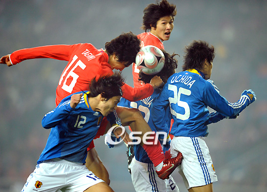 [OSEN=친황다오, 올림픽취재반] 한국과 일본이 베이징 올림픽에서 동병상련의 아픔을 겪고 있다. 한국은 지난 10일 이탈리아와 D조 리그 2차전서 0-3으로 완패, 8강 진출이 불투명해졌다. 초반부터 미드필더의 활발한 움직임으로 승부를 걸었지만 이탈라이의 빗장수비는 열리지 않았고 오히려 상대 공격수들의 월등한 기량에 수비가 무너지며 완패했다. 2경기에서 1무1패를 기록한 한국의 자력 8강 진출은 어렵다. 일단 마지막 상대인 온두라스에 무조건 대승을 거두고 이탈리아가 카메룬을 반드시 꺾는 경우의 수에 의지하게 됐다. 물론 가능성은 있지만 기적이 필요하다. 같은 시각 소리마치 야스하루 감독이 이끄는 B조의 일본은 나이지리아에 1-2로 패했다. 7일 미국에 0-1로 졌기 때문에 2연패로 탈락이 확정됐다. 지난 2004년 아테네 대회에 이어 2연속 조별리그 탈락이었다. 일본언론들은 굴욕이라는 표현을 쓰며 비난의 칼을 세웠다. 일본은 이날 원톱으로 이충성, 왼쪽 날개로 야스다 미치히로를 내세우는 등 공세에 나섰지만 오히려 후반 13분과 29분 내리 두 골을 내주었다. 후반 교체 투입된 도요다가 한 골을 만회했지만 경기를 뒤집기는 역부족이었다. 일본은 국내 프로구단들의 협조를 받지 못해 와일드카드 보강에 실패한 점이 이번 대회의 패착으로 이어졌다는 지적을 받고 있다. 더욱이 J리그와 A 대표팀의 일정에 밀려 베스트멤버로 고작 2차례 평가전만 치렀다. 결과적으로 동아시아의 강자들인 한국과 일본은 세계의 높은 벽을 실감했다. 물론 한국은 아직 가능성은 있지만 수준 높은 축구를 구사하는 이탈리아에 쓴 맛을 보았다. 여전히 한국과 일본은 '우물 안 개구리'인 셈이다. 지난 2월 동아시아선수권 한일전. . . . . .
