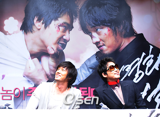 77년생 동갑내기 라이벌 강지환과 소지섭이 서로 함께 작업을 한 소감을 털어놨다. 소지섭과 강지환은 12일 오전 11시 서울 이화여고 100주년 기념관에서 열린 ‘영화는 영화다’의 제작보고회에 나란히 참석했다. 두 배우에게 서로 함께 작업을 하면서 라이벌 의식은 없었는지 질문을 받았다. 소지섭은 “강지환에게 라이벌 의식은 전혀 없이 편하게 했다”고 밝혔다. 강지환은 “저는 라이벌 의식 많았다(웃음)”며 “‘영화는 영화다’ 컨셉트 자체가 남자 대 남자의 대결 구도다. 기존에는 여배우랑 작품을 계속해오다가 이번에 동료이자 친구와 연기하는 것이라 잘하고 싶은 마음이 컸다. 카메라 안에서는 정말 열심히 촬영했고 밖에서는 친구로 편하게 촬영했다”고 전했다. 또한 강지환은 “처음에는 소지섭에게 톱스타의 느낌을 많이 받았고 부담을 느낀 것도 사실이다”며 “하지만 촬영을 하면서 느낀 것이 소지섭은 촬영이 끝나고 제일 먼저 모니터를 확인한다. 현장에서 같이 연기를 해주고 옆에 있다는 자체가 든든했다”고 말했다. ‘영화는 영화다’는 현실 속의 깡패와 영화 속 깡패라는 아이러니한 설정 속에 놓인 두 남자의 대결을 그린다. 실제 조직폭력배인 강패 역에는 소지섭이 출연한다. 액션 영화를 촬영하는 최고 스타배우 수타 역에는 강지환이 나섰다. 개봉은 9월 11일. crystal@osen.co.kr 민경훈 기자 rumi@osen.co.kr . . . . .