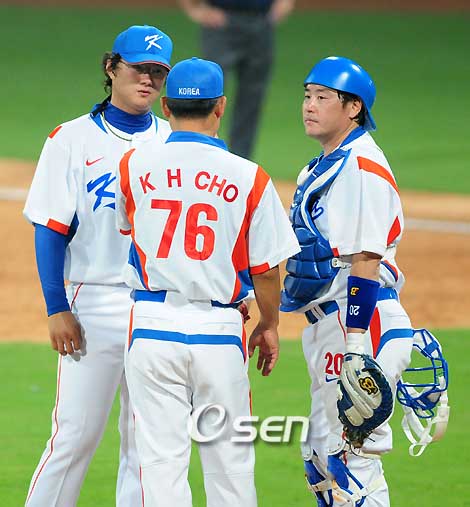 [OSEN=베이징, 올림픽취재반]아직도 여운이 가시지 않는 짜릿한 재역전극이었다. 그러나 냉정하게 판단한다면 아쉬운 대목도 있었다. 환호성 속에 파묻힌 대표팀의 불안요소는 분명히 있었다. 한국은 지난 13일 난적 미국을 9회말 이종욱의 끝내기 희생플라이로 8-7 케네디스코어로 꺾고 큰 고비를 넘겼다. 첫 경기에서 미국을 꺾은 만큼 남은 쿠바와 일본에 지더라도 4강에 오를 수 있는 발판을 마련했다. 그러나 불안요소도 없지 않았다. 가장 눈에 거슬리는 대목은 소방수 한기주의 자신감 없는 피칭이었다. 평소 한국에서라면 6-4의 리드는 가볍게 처리했다. 그러나 올림픽이라는 큰 무대에서 자신의 볼을 던지지 못했다. 볼을 끌고 나오지 못하고 잡아 채는 볼이었다. 홈런, 안타, 2루타 등 난타를 당하고 3실점했다. 대표팀은 한기주의 불안으로 숙제를 안게 됐다. 한기주를 내세운 것은 대표팀 주전 소방수가 오승환이 아니라 한기주라는 점을 밝힌 것이나 다름없다. 그러나 한기주가 믿음직한 모습을 보여주지 못해 김경문 감독의 고민은 깊어질 것이다. 갑자기 투입돼 인상적인 활약을 펼친 윤석민의 어깨가 더욱 무거워질 수도 있다. 2회초 선두타자 라포타의 땅볼을 잡은 박진만은 어이없는 1루 악송구로 주자를 살려주었다. 박진만은 이미 세계무대에서 실력을 인정받은 대표팀 부동의 명품 유격수. 이날은 몸이 덜 풀렸는지 박진만 답지 않은 송구가 나왔다. 언더핸드 정대현도 마찬가지였다. 정대현은 2⅔이닝 동안 2안타 1실점했다. 5회 3-3 동점을 내준 안타와 6회 추격의 솔로홈런을 맞았다. 공교롭게도 모두 왼손 타자들이었다. 우타자들을 상대로 5연속 포함 6개의 삼진을 뽑아내는 위력을 발휘했지만 왼손에는 약한 모습을 보였다. 또 하나는 불펜에서 투수들의 볼을 받아줄 수 있는 포수가 부족하다. 올림픽은 불펜포수를 인정하지 않는다. 모두 자체 해결한다. 한국은 포수를 2명 뽑았는데 결과적으로 불펜포수가 부족하게 됐다. 포수 경험이 있는 이택근이 불펜포수로 나서고 있지만 그만큼 기용의 폭이 줄어들 수 있다. 한국은 4강이 목표가 아니라 메달이 목표다. 예선리그를 통과해 정작 4강 결승토너먼트에 진출하다고 해도 승리를 거두지 못한다면 메달은 물거품이 된다. 보다 강한 팀을 만들기 위해서는 미국전에서 보여준 불안요소들을 없애야 한다. . . . . . 9회 마무리에 실패한 한기주를 위로하고 있는 조계현 코치와 포수 진갑용. 자신감 회복이 절실한 한기주이다.