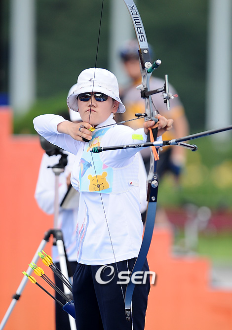 [OSEN=베이징, 올림픽취재반] 박성현(25, 전북도청)이 중국의 텃세 속에 개인전서 은메달에 머물렀다. 세계랭킹 2위 박성현은 14일 베이징올림픽 그린양궁장에서 열린 결승전에서 한국의 주현정과 윤옥희를 잇따라 꺾고 올라온 세계랭킹 6위 중국의 장주안주안에 109-110으로 패해 2관왕 2연패에 실패했다.. 동시에 한국은 양궁이 처음으로 정식종목이 된 지난 1984년 LA 올림픽 이후 여자 개인전 7연패 달성이 좌절됐다. 박성현은 8강전에서 일본으로 귀화한 하야카라 나미(한국명 엄혜랑)를 꺾은 뒤 4강전에서 북한의 권은실을 물리치고 결승에 올라 왔지만 홈 관중의 응원속에 중국 장주안주안에게 1점차로 패하고 말았다. 장주안주안은 8강전에서 주현정을 물리친 뒤 4강전에서 윤옥희도 이기고 올라와 한국 선수들을 모조리 꺾고 금메달을 목에 거는 기염을 토했다. 4강전에서 중국의 장주안주안에게 109-115로 패한 세계랭킹 1위 윤옥희(23, 예천군청)는 3,4위 결정전에서 북한의 권은실을 109-106으로 물리치고 동메달을 목에 걸었다. 세계랭킹 11위 주현정(25, 현대모비스)은 중국의 장주안주안에게 101-106으로 패하며 4강 진출에 실패했다. 바람이 부는 가운데 많은 비가 쏟아지면서 주현정은 1, 2엔드에서 6점을 두 번 쏘고 7점도 기록하며 점수차가 벌어져 뒤집지 못하고 패했다. 박성현.