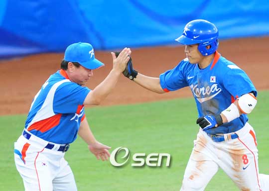 [OSEN=베이징, 올림픽 취재반] 김경문 감독이 이끄는 올림픽 야구 대표팀 3번 타자 정근우(26, SK)가 시원한 홈런포를 쏘아 올렸다. 정근우는 15일 중국 베이징 우커송 야구장에서 열린 캐나다와의 대결에 2루수 겸 3번 타자로 선발 출장, 0-0으로 맞선 3회 2사 후 두 번째 타석에 들어섰다. 정근우는 캐나다 오른손 선발 마이크 존슨의 초구를 걷어 좌측 펜스를 넘는 솔로 아치를 터트렸다. 정근우는 공을 때린 뒤 홈런을 직감하며 주먹을 불끈 쥐었다. 1회 첫 타석 때 좌전 안타로 출루한 정근우는 4번 이승엽 타석 때 2루 베이스까지 훔치며 호타준족의 위력을 마음껏 과시했다. 대표팀의 멀티 플레이어로 제 몫을 다하고 있는 정근우는 팀내 타자 가운데 가장 뛰어난 타격감을 자랑한다. 지난 13일 미국과의 경기에서 6-7로 뒤진 9회 선두 타자 진갑용 타석에 대타로 나선 정근우는 미국 다섯 번째 투수 스티븐스와 풀 카운트까지 가는 접전 끝에 좌익선상 2루타를 터트린 뒤 김현수의 내야 땅볼로 3루까지 안착했다. 이어 이택근의 2루수 앞 땅볼로 홈까지 파고 들어 승부를 원점으로 되돌리는 귀중한 득점을 올리며 대표팀의 8-7 역전승을 이끌었다. 14일 중국전에서도 유일하게 2안타를 때린 정근우는 이날 경기에서도 좌전 안타, 좌월 솔로 홈런으로 대표팀 타선에 활력을 불어 넣고 있다. 한편 대표팀은 4회초 현재 1-0으로 리드하고 있다. 2008베이징올림픽 야구 예선 한국-캐나다 경기가 15일 저녁 우커송 제2 야구장에서 열렸다. 3회초 2사 정근우가 선제 좌월 솔로 홈런을 날리고 김광수 3루 주루코치의 환영을 받고 있다./베이징=올림픽취재반