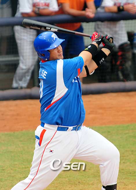 [OSEN=베이징, 올림픽취재반] 거인이 베이징 중심에 우뚝 섰다. 베이징 올림픽 야구대표팀이 예선 7전 전승으로 4강에 진출했다. 한국은 20일 우커송 제2구장에서 열린 예선 마지막 네덜란드전에서 10-0으로 8회 콜드게임승을 따냈다. 모든 선수들이 잘했지만 이 선수를 빼놓고는 이번 대표팀을 설명할 수 없다. 다름 아닌 이대호(26, 롯데)가 그 주인공이다. 예선 7경기에서 이대호의 위력은 그야말로 압도적이었다. 이승엽이 부진하고 김동주가 부상으로 정상이 아니었지만, 이대호만이 매경기에 나와 타석에서 공포감을 유지했다. 이대호의 예선 7경기 성적은 화려함 그 자체다. 21타수 9안타로 타율 4할2푼9리·3홈런·10타점·5득점. 3홈런과 10타점은 각각 대회 1위와 2위에 해당한다. 사사구도 5개나 얻어냈다. 이 가운데 최강 쿠바로부터 얻어낸 고의4구까지 하나 포함돼 있다. 출루율은 무려 5할3푼8리. 홈런 3개와 2루타 1개로 장타율은 무려 0.905. 출루율과 장타율을 합한 OPS는 무려 1.443으로 그야말로 놀라운 수준. 단기전에서 개인 성적은 얼마든지 나올 수 있지만 이 정도로 좋은 성적이 나오기는 쉽지 않다. 이대호의 위력은 예선 첫 경기였던 지난 13일 미국전부터 시작됐다. 0-1로 뒤진 2회말 무사 1루에서 좌측 담장을 훌쩍 넘어가는 투런 홈런을 작렬시키며 경기를 뒤집었다. 올림픽의 시작이라는 중압감에 짓눌린 대표팀에게 이대호가 선사한 대형 홈런 한 방은 긴장감을 녹여주었고, 자신감을 얻게 만들었다. 이대호는 16일 일본전에서도 0-2로 뒤진 7회초 극적인 동점 투런 홈런을 쏘아올리며 경기를 반전시켰다. 대만전에서도 3타수 2안타 3타점으로 불방망이를 휘둘렀고 쿠바전에서는 고의4구 포함 사사구 3개를 얻었다. 예선 최종전이었던 이날 네덜란드전에서 4번 타자로 선발출장한 이대호는 결승 선제 투런포 포함 5타수 2안타 3타점으로 활약했다. 사실상 올림픽 예선에서 최고타자로 등극하는 순간이었다. 알렉세이 벨(쿠바)이 예선 7경기 모두 출장해 25타수 13안타로 타율 5할3푼·6타점·8득점으로 활약하며 등 OPS(1.531)에서 이대호를 앞질렀지만 홈런이 하나도 없다. 타점에서도 이대호에게 밀렸다. 예선 타점 1위를 예약한 알프레도 데스파이그네(쿠바)도 타율 3할3푼3리·1홈런·11타점을 기록했으나 OPS(0.913)는 이대호에 비해 한참 뒤진다. 미국과 일본의 중심타자들과 비교해도 이대호의 예선 성적은 압도적이다. 미국에서 가장 좋은 생산력을 보이고 있는 테리 티피는 예선 6경기에서 23타수 11안타, 타율 4할7푼8리·5타점을 올리고 있다. 그러나 홈런이 1개도 없어 타석에서 위압감이 높지 않았다. OPS(1.221)도 이대호에 근소히 뒤진다. 일본의 4번 타자 아라이 다카히로도 6경기에서 22타수 7안타, 타율 3할1푼8리·1홈런·6타점을 기록하고 있을 뿐이다. 미국과 일본이 이날 예선 마지막 경기를 남겨두고 있지만 두 선수가 이대호의 성적을 넘보긴 쉽지 않을 전망이다. . . . . .