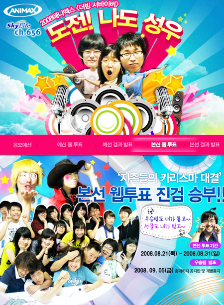 스카이라이프 대표 애니메이션 채널 애니맥스에서 여름방학을 맞이해 열고 있는 '2008 애니맥스 '도전! 나도 성우' 더빙 서바이버'의 본선 웹투표가 21일부터 오는 31일까지 진행된다. '2008 애니맥스 '도전! 나도 성우' 더빙 서바이버'는 아마추어 성우 콘테스트로, 지난해에 이어 올해 2회를 맞이한 애니맥스 대표 이벤트다. UCC 예선, 예선 웹투표를 거쳐 본선에 진출한 5팀은 지난 11일부터 14일까지 총 4일간 더빙현장을 견학해 실제 프로성우의 더빙 지도, 연습 등의 과정을 거쳐 15일에는 실제 녹음실에서 본선작 '로미오와 줄리엣'의 부분 더빙을 진행했다. 애니맥스는 이 중 이벤트의 취지에 맞는 '재미있고, 열정적이며, 도전 정신이 가득한' 팀에게 최우수상, 우수상을 증정할 예정이며, 가장 뛰어난 기량을 발휘한 1명의 도전자에게는 MVP를 수여할 계획이다. 심사는 내부 심사단, 외부 심사단, 네티즌 웹투표를 종합해 이뤄진다. 이에 따라 본선 5팀의 실전 더빙 장면은 애니맥스 홈페이지(www.animaxtv.co.kr)와 스카이라이프 홈페이지(www.skylife.co.kr), 다음TV팟(tvpot.daum.net)에서 볼 수 있으며, 이 중 마음에 드는 팀을 골라 투표에 참여하면 추첨을 통해 총 90명에게 '2008 애니맥스 크로스백'을 증정한다. 내·외부 심사와 본선 웹투표를 통해 선발된 '2008 애니맥스 '도전! 나도 성우' 더빙 서바이버'의 수상팀은 9월 5일에 최종 발표된다. 최우수상 수상팀에게는 장학금 200만 원과 EA코리아 제공 닌텐도 Wii 게임 패키지, 우수상 수상팀에게는 장학금 100만 원, MVP는 30만 원 상당의 도서상품권과 EA코리아 광고 영상 더빙의 기회가 주어진다. '2008 애니맥스 '도전! 나도 성우' 더빙 서바이버'의 본선 웹투표에 참여하고 싶은 사람은 애니맥스 홈페이지(www.animaxtv.co.kr)나 스카이라이프 홈페이지(www.skylife.co.kr), 다음TV팟(tvpot.daum.net)을 참조하면 된다. what@osen.co.kr 애니맥스 제공.