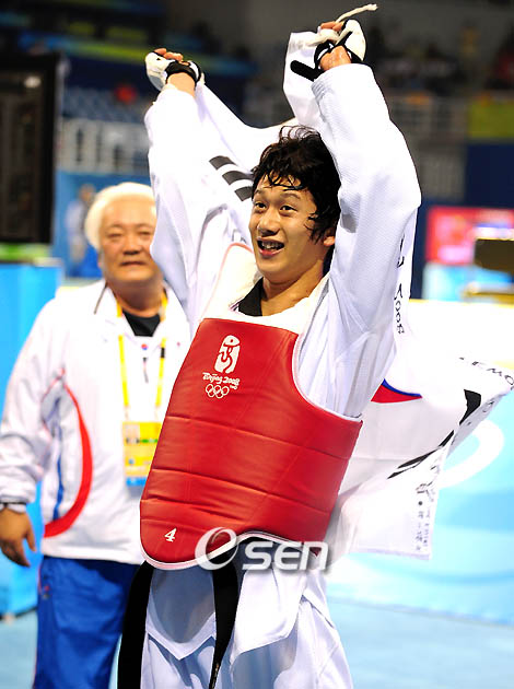 [OSEN=베이징, 올림픽취재반] "열심히 준비해서 부담감은 없었다". 21일 한국에 10번째 금메달을 선사한 남자 태권도 68kg급 손태진(20, 삼성에스원)은 자신감이 넘쳤다. 난적인 2005년 세계선수권대회 챔피언 마크 로페스(미국)를 꺾고 금메달을 획득한 손태진은 "그동안 많은 준비를 했기 때문에 큰 걱정 없었다. 로페스와 대결은 크게 문제 되지 않았다. 감독님이 기다리라고 해서 마지막 기회를 노리기 위해 기다렸고 2초 남기고 공격했다"고 소감을 밝혔다. "공격이 제대로 들어가서 이겼다는 생각을 했다"는 손태진은 "로페스는 부담이 없다. 그동안 열심히 준비했기 때문에 오히려 부담이 없었다"고 자신있게 대답했다. 또한 경기 중간에 허벅지 부상을 입은 것이 아니냐는 물음에는 "중간에 쓰러졌던 것은 너무 힘들어서 일부러 그랬다. 8강전서 다쳤던 허벅지는 전혀 문제가 없었다"고 설명했다. 아직은 갓 20살인 손태진은 "금메달을 따면 좋을 줄 알았는데 아직 실감이 나지 않는다. 잘 모르겠다. 시간이 지나야 알 수 있을 것 같다"며 얼떨떨한 심정을 밝혔다. 손태진은 "지금까지 나혼자 잘해서 금메달을 딴 것이 아니다. 감독님과 코칭스태프 그리고 모든 선수들이 휴가도 못갔다. 그동안 지도해 주신 것에 대해 굉장히 감사하다"는 말도 잊지 않았다.