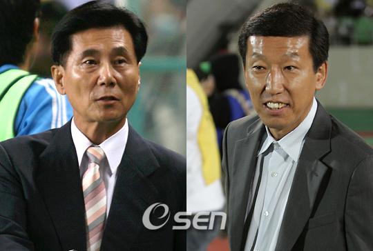 골잡이들의 득점력이 살아난 전북과 선수들의 줄부상으로 울고 있는 울산이 올 시즌 4번째 '현대가(家) 더비'를 치른다. 5승 7무 3패(승점 22)로 리그 5위를 달리고 있는 울산 현대는 오는 24일 전주월드컵경기장에서 11위에 머물러 있는 전북 현대와 16라운드 원정경기를 치른다. 현대가의 두 팀은 올 시즌 상대전적에서도 1승 1무 1패로 승패를 가리지 못했다. 올 시즌 4번째이자 마지막이 될 수도 있는 맞대결인 가운데 휴식기 후 첫 경기서 꼭 승리를 챙기겠다는 각오다. 울산은 더욱이 컵대회를 포함해 최근 4경기 연속 무승(3무 1패)이라 반드시 승점 3점이 필요하다. 지난 20일 FA컵 16강전에서 부산을 물리치며 후반기를 산뜻하게 출발한 울산은 비록 염기훈, 이상호, 박병규 등이 부상으로 전북전 출전이 어려워 보이지만 든든한 맏형인 우성용의 팀 복귀로 분위기가 상승했다. 우성용은 팀 훈련서 연습경기에 뛰지는 못해 전북전에 나설지는 불투명하지만 선수들에게 정신적으로 큰 힘이 될어줄 전망이다. 통산 113골을 기록 중인 우성용은 김도훈(성남 코치)이 가지고 있는 K리그 최다골인 114골에 도전 중이다. 이에 맞서는 전북은 울산과 상황이 전혀 다르다. 6강 플레이오프 진출을 노리고 있는 전북은 휴식기 직전 정규리그 서울전에 이어 20일 창원시청과 FA컵 16강전서 연속 득점을 터트린 조재진에게 기대를 건다. 또한 무회전킥의 정확성이 높아지고 있는 김형범도 전북에는 큰 힘이 된다. 여기에 최태욱과 정경호도 건재해 전북은 홈 경기서 반드시 승리하겠다는 각오다. 극과 극의 상황에 놓인 전북과 울산이 현대가 더비 4차전에서 어떤 결과를 낳을지 주목된다. 김정남-최강희 감독.