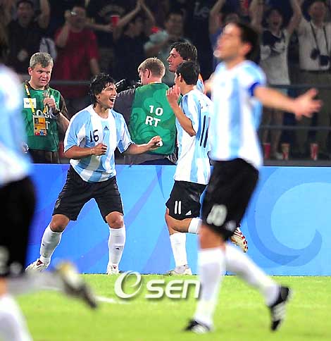 [OSEN=베이징, 올림픽취재반] 꽉 막혀 숨 막히는 경기장서 결국 체력이 승부를 갈랐다. 아르헨티나는 23일 중국 베이징 올림픽 주경기장에서 열린 남자 축구 결승전 나이지리아와 대결서 후반 13분 앙헬 디마리아의 결승골에 힘입어 1-0 승리를 거두었다. 이로써 아르헨티나는 지난 2004년 아테네 올림픽에 이어 축구 2연패를 달성했다. 오후 1시에 열린 결승전은 낮 경기에 익숙하지 않은 선수들에게 큰 부담이 됐다. 특히 주경기장 자체가 바람이 많이 통하지 않는 상태였고 그라운드 내에는 그늘이 없어서 경기를 뛰는 선수들은 급속도로 피로가 쌓여갔다. 심판진은 선수들의 체력 부담을 덜어주고자 전반 30분 파울이 일어나자 선수들에게 모두 음료를 권하는 모습을 보이는 등 서로 힘든 경기가 계속됐다. 아르헨티나와 나이지리아는 전반서 많은 움직임을 보이지 못했다. 경기장을 가득메운 8만 9000여 명의 관중들도 시간이 지날수록 응원소리가 줄어드는 등 경기장을 찾은 모두가 힘겨운 경기였다. 물론 환희의 순간도 있었다. 바로 후반 13분 터진 디마리아의 결승골 장면. 메시의 날카로운 패스를 이어받은 디마리아는 단독 돌파 후 상대 골키퍼가 나오자 살짝 띄우며 골대 안으로 밀어 넣으며 진이 빠진 관중들에게 큰 활기를 선사하기도 했다.