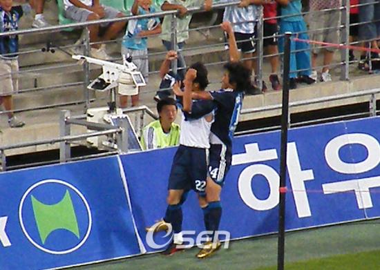 김정남 울산 현대 감독이 마침내 개인 통산 200승을 거두었다. 김감독이 이끄는 울산은 30일 울산 문수 월드컵 경기장에서 열린 대구FC와의 K리그 17라운드 경기에서 3-2로 승리했다. 이로써 김정남 감독은 김호 대전 감독에 이어 K리그 통산 200승 달성이라는 금자탑을 세웠다. 또한 이날 경기에서 2골을 넣은 루이지뉴는 K리그 통산 9800호 골의 주인공이 되었다. 울산은 전반 17분 선제골을 넣으며 앞서나갔다. 오른쪽에서 올린 코너킥을 가까운 쪽 포스트에 있던 유경렬이 헤딩으로 방향을 바꾸었고 이것을 루이지뉴가 그대로 오른발 슈팅으로 연결하며 골을 만들어낸 것이다. 그러나 울산은 전반 32분 박병규의 부상 공백을 잘 막아내던 김동규마저 부상으로 나가며 전력에 구멍이 생겼다. 김정남 감독은 이 자리에 이세환을 집어넣었지만 불안함을 지울 수는 없었다. 전반 43분 대구가 동점골을 만들었다. 아크서클 앞에서 얻어낸 프리킥을 에닝요가 오른발로 감아차 골네트를 흔든 것. 1-1인 상황에서 맞이한 후반은 대구의 흐름으로 경기가 진행되었다. 그러나 결정적인 찬스는 울산이 먼저 잡았다. 후반 9분 루이지뉴의 돌파를 대구 수비수 백영철이 파울로 저지한 것. 이영철 주심은 단호하게 페널티킥을 선언했다. 키커는 알미르. 하지만 알미르의 킥은 백민철 골키퍼에게 막히면서 역전의 찬스를 놓치고 말았다. 이에 김정남 감독은 김민오를 빼고 우성용을 투입하며 공격력을 강화했다. 대구 역시 장남석을 빼고 지오바니를 투입하며 공격의 동력을 새것으로 교체했다. 공격 교체카드는 울산의 것이 맞아떨어졌다. 후반 20분 대구는 이근호의 날카로운 크로스를 루이지뉴가 헤딩슈팅으로 연결했으나 김영광의 선방에 막혔다. 반면 울산은 3분 후 역습 상황에서 우성용의 크로스를 받은 루이지뉴가 오른발로 마무리하며 역전골을 뽑아냈다. 역전을 내준 대구는 동점골을 노렸지만 몸을 날리며 수비에 나선 울산 수비진들의 투혼을 넘지 못했고 후반 45분 우성용에게 추가골까지 내주었다. 우성용은 이 득점으로 114골을 기록해 김도훈이 가지고 있던 K리그 개인 최다득점 타이를 이루게 되었다. 대구는 경기 종료 직전 지오바니가 골을 넣었지만 이미 늦은 뒤였다. ■ 30일 전적 ▲ 울산 울산 현대 3(1-1 2-1)2 대구 FC △ 득점 = 루이지뉴(전17 후24) 우성용(후45, 이상 울산) 에닝요(전44) 지오바니(후49, 이상 대구) bbadagun@osen.co.kr ▲ '최다골 타이' 우성용, "신기록도 필드골로". ▲ '한동원 결승골' 성남, 전남 꺾고 14G 무패. ▲ '보르코 1골 1도움' 인천, 대전에 2-1 승. ▲ 김학범, "이동국 무득점 크게 걱정 안해". ▲ '200승' 김정남, "선수들이 일궈낸 결과".