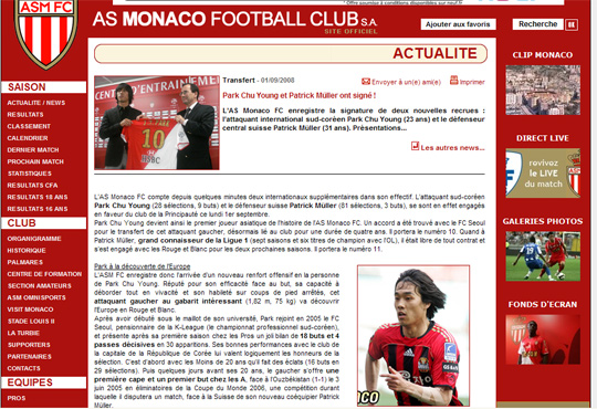 FC서울 박주영의 AS모나코 이적이 최종 확정됐다. 1일 밤(한국시간) 서울은 보도자료를 통해 "지난 달 31일 프랑스 1부리그 AS모나코와의 이적 협상 차 출국 했던 박주영이 현지시간으로 1일 오후 열린 최종 계약 협상이 성공적으로 마무리됨에 따라 마침내 선진 유럽 리그에 진출할 수 있게 됐다"고 밝혔다. 박주영은 메디컬테스트도 무사히 끝마쳤으며 배번은 FC서울에서 달았던 10번을 달게 됐다. AS모나코와의 계약 기간은 4년으로 확정됐으며 박주영이 K리그로 돌아올 때는 반드시 FC서울로 복귀해야 하는 것에 대해서도 합의했다. 그러나 그 외 계약 조건에 대해서는 양 구단 합의에 따라 공개하지 않기로 했다. AS모나코 관계자들은 구단 역사상 처음으로 아시아권에서 영입하게 된 박주영에 대해 큰 기대를 걸고 있으며 그가 세계적인 선수로 성공할 수 있도록 지원을 다하겠다고 약속한 것으로 알려졌다. 당초 박주영은 계약이 확정될 경우 일시 귀국해 팬들에게 작별 인사를 전할 예정이었지만 모나코 팀의 강력한 훈련 합류 요청에 따라 귀국하지 않고 곧바로 현지 적응에 들어갈 계획이다. 지난 2005년 FC서울에 입단한 첫 해부터 30경기에 출전해 그 해 최다인 18골을 뽑아내며 K리그 사상 첫 만장일치 신인왕을 거머쥔 박주영은 총 4년간 FC서울에서 33골 9도움을 기록했다. 박주영이 앞으로 활약할 AS모나코는 1919년에 창단해 총 7차례 우승컵을 들어 올린 명문 구단으로 티에리 앙리, 다비드 트레제게, 엠마누엘 아데바요르 등 현재 빅 리그에서 활약하고 있는 공격수들도 모두 이 팀을 거친바 있다. 7rhdwn@osen.co.kr