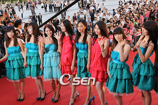 ‘발견’ ‘복원’ ‘창조’를 키워드로 하는 제 2회 서울충무로국제영화제가 3일 오후 서울 장충동 국립극장 해오름극장에서 9일간의 화려한 막을 올렸다. 탤런트 이덕화가 운영위원장으로 참여하고 박중훈과 강수연이 사회를 맡은 이날 개막식 행사에는 임권택 감독 등 국내외 영화인들이 대거 참석해 열기를 더했다. 소녀시대가 국립극장 해오름극장 앞에 마련된 레드카펫에서 인사를 하고 있다./민경훈 기자rumi@osen.co.kr