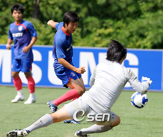 '이번에는 골을 넣는다'. 허정무 감독이 이끄는 축구 국가대표팀은 3일 저녁 서울월드컵경기장에서 열린 북한과의 남아공 월드컵 아시아지역 최종예선 대비 훈련서 90분 가량 강도 높은 훈련을 소화했다. 수비적으로 나올 북한에 대비해 골 결정력을 높이는 훈련을 집중적으로 한 대표팀은 공격수와 수비수 등 포지션을 가리지 않고 슈팅 연습을 하며 북한의 밀집수비를 뚫을 해법을 찾았다. 김정우(26, 성남)가 오른쪽 허벅지 타박상, 이천수(27, 수원)가 목 감기로 훈련에서 빠진 가운데 대표팀은 처음 10분 동안 1대1 대결에 이은 슈팅으로 마무리하는 연습을 반복적으로 실시했다. 슈팅 기회가 언제 올지 모르는 상황에서 누구든 기회를 골로 만들어 북한전 득점을 노리겠다는 허정무호의 생각이다. 한국은 북한과 아시아지역 3차예선에서 2번 만나 모두 득점없이 비겼다. 이후 허정무 감독은 2대2, 3대3 상황을 만들어 선수들에게 다양한 공격을 지시했다. 북한의 두터운 수비를 뚫기 위해 한 박자 빠른 패스를 요구하기도 했다. 패스 성공률을 높혀 완벽한 공격 기회를 만들겠다는 각오다. 허정무 감독은 선수들에게 집중력을 높이라는 말을 반복하며 첫 경기인 남북전서 승점 3점을 챙기려는 의지를 강력히 표현했다. 7rhdwn@osen.co.kr